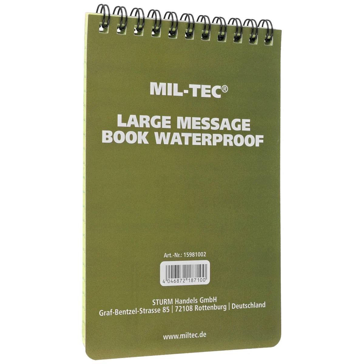 Mil-Tec Message Book Waterproof Large – a professional notebook designed for use in all weather conditions. Thanks to its impregnated pages, notes can be written and read even in rain, snow, or underwater.