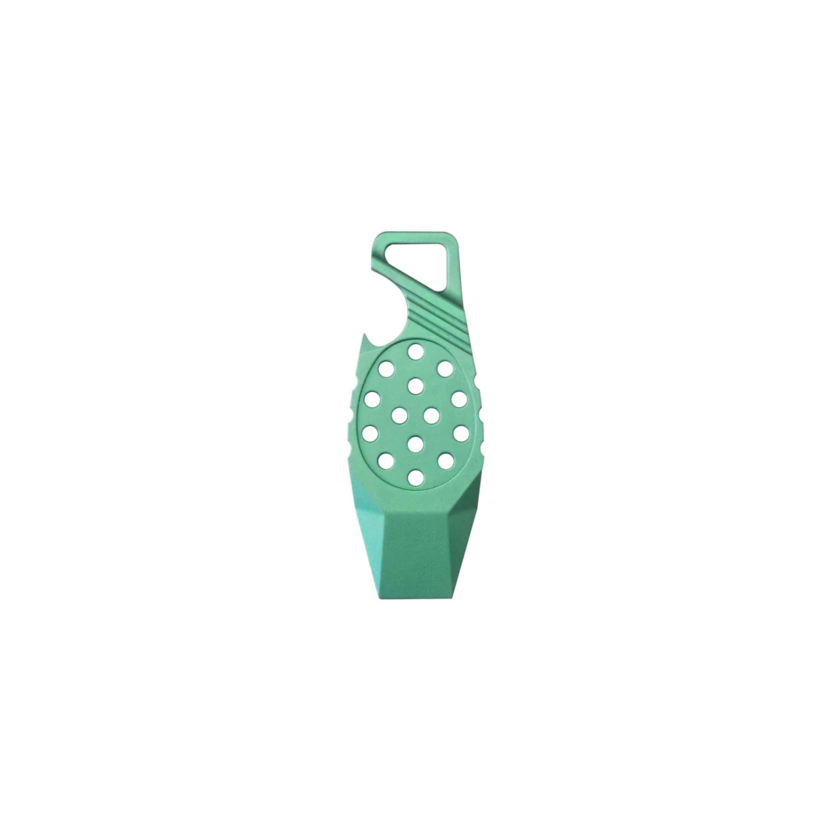 Construction: titanium plate, beveled on one side for easier prying, also includes a bottle opener. A series of holes in the center improves grip. Thanks to the loop at the back, you can easily attach your crowbar to, for example, your keys. All in an elegant Green finish.
