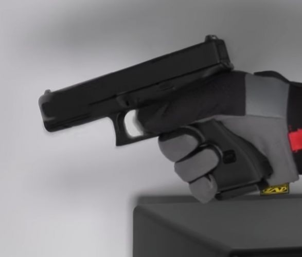 Customization options – The front of the frame includes a Weaver 22 mm rail, allowing for the attachment of accessories such as a laser sight or a tactical flashlight. The slide and frame feature licensed Glock markings and a unique serial number.