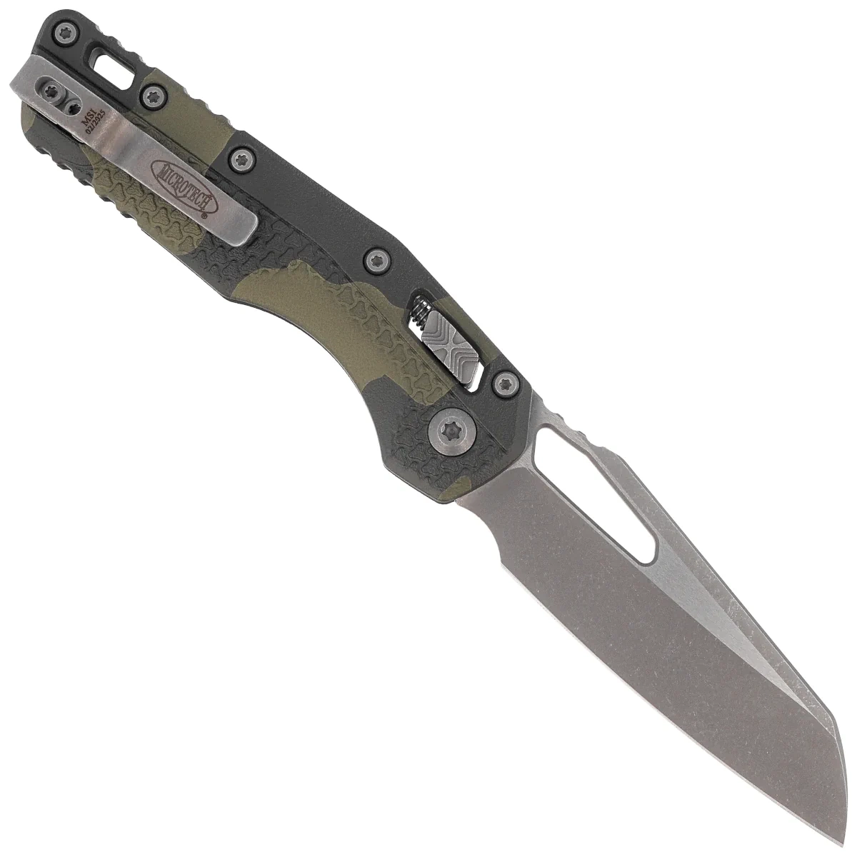 Microtech MSI S/E Ram-Lok Olive Camo Tri-Grip Polymer, Apocalyptic M390MK by Tony Marfione (210T-10APPMOC)