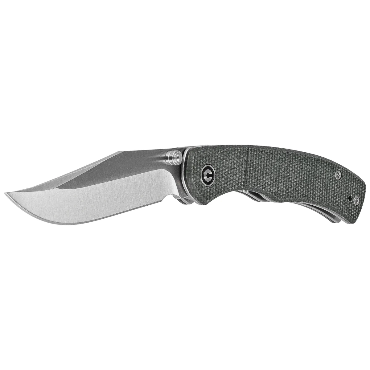 Handle - rough grips made of Canvas Micarta composite, a virtually indestructible material that is insensitive to weather conditions, resistant to chemicals and mechanical damage, which are screwed onto steel liners. The open-backed design, which is attached with steel spacer sleeves, reduces weight and makes cleaning easier. The simple, reliable design ensures many years of use. The deep carry clip, two-position (right/left), allows the knife to be carried in a tip-up position. The pivot axis is decorated with the stylized Civivi logo.