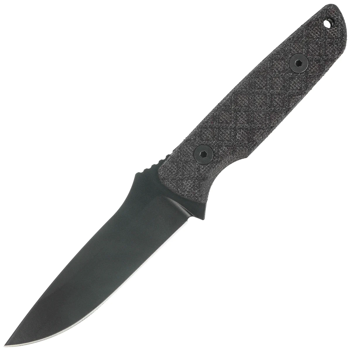 Alala Black Canvas Micarta, Black named after the ancient Greek word for “battle cry” or “war cry”, is a solid everyday knife designed for reliability and durability. Its full tang construction ensures maximum durability, making the knife resistant to damage and overload during intensive use. The 1095 Cro-Van carbon steel blade is exceptionally hard and easy to sharpen, making it the ideal choice for tasks that require both precision and effectiveness. The black, powder-coated protective layer minimizes light reflection and effectively protects the steel from corrosion. The Micarta composite handle offers a secure, stable grip, even when hands are damp or dirty. Its rough texture ensures excellent control over the tool, and the ergonomic shape is perfectly suited to the natural position of the hand. The knife comes with a durable plastic sheath for safe storage and quick access to the tool. Designed by Curtis Iovito, an experienced Special Forces veteran, this model reflects the practicality and functionality that will be appreciated by professionals and users looking for a reliable everyday tool.