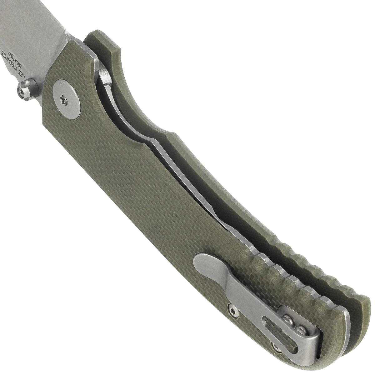 - Astor Green G10, Tumbled strong folder designed by the well-known knifemaker, Les George. Strong blade made of CPM 154CM steel, grips made of durable G10 composite. An excellent tool for the military and outdoor enthusiasts.