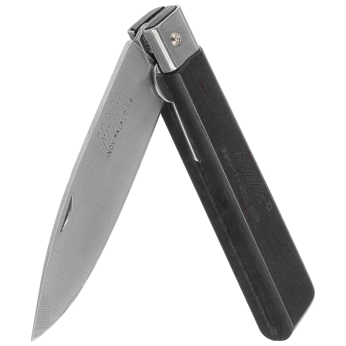 - 2138 Ebony Wood, Satin X50CrMoV15 - an EDC folding knife by MAM that combines natural ebony wood with the durability of X50CrMoV15 steel. Classic aesthetics and reliable construction make it a functional and elegant companion for everyday use.
