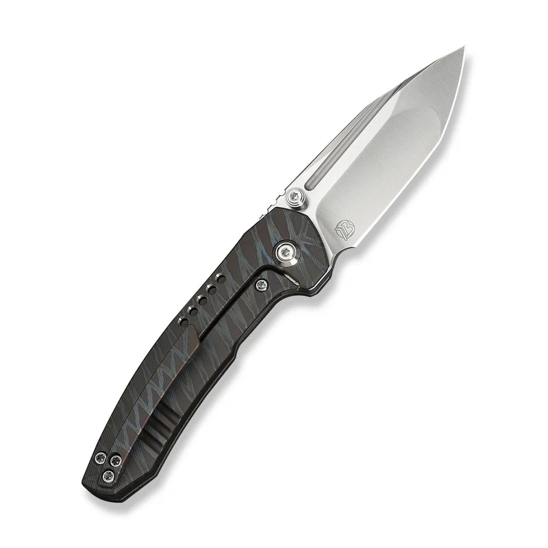 Micro Trogon Tiger Stripe Titanium, Satin is the result of a collaboration between acclaimed designer Brian Brown and WE Knife brand . It combines the elegance of modern design with premium materials and functionality that will be appreciated by both collectors and users looking for a reliable EDC knife. Blade made of Böhler M390 powder steel guarantees excellent sharpness retention, corrosion resistance and utility strength. The titanium Handle, equipped with a precision frame lock mechanism, ensures the durability of the design while keeping the weight low. The compact size, smooth thumb stud opening and high-quality components, such as ceramic Ball bearings, make the Micro Trogon a model of exceptional ergonomics, reliability and aesthetics, ideal for demanding everyday carry users.
