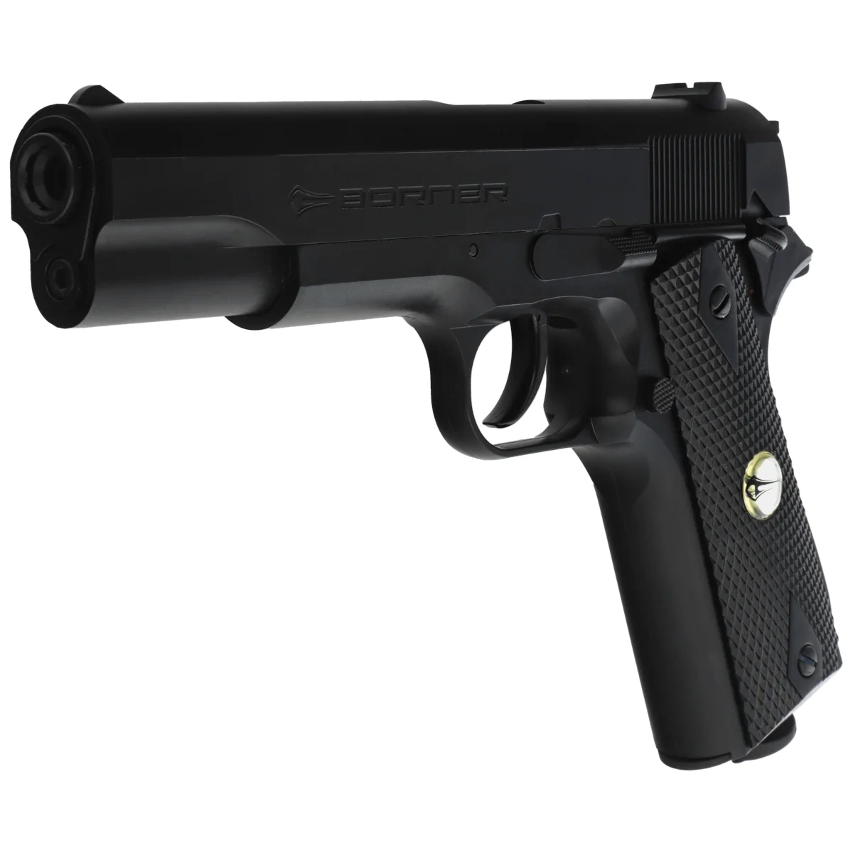 Borner CLT125 4.5 mm CO₂ Air Pistol is a lightweight replica inspired by the legendary Colt 1911. Featuring a solid metal-polymer construction and a simple power system, it is an excellent choice for those beginning their journey into airgun shooting.