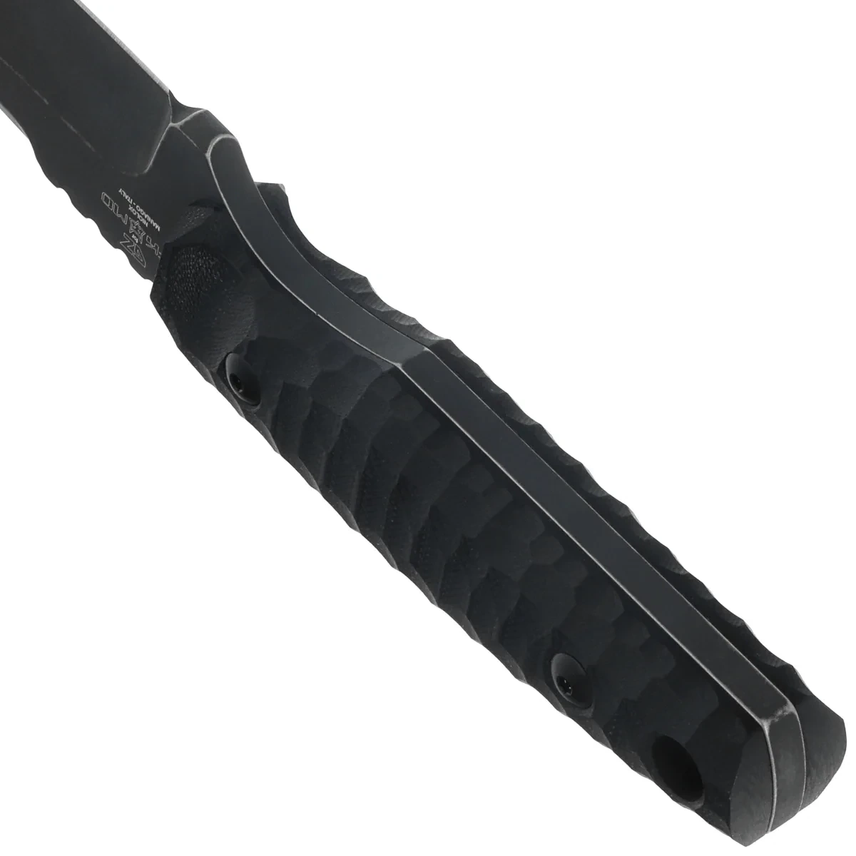 Handle - made of durable G10 laminate, resistant to moisture, chemicals and mechanical damage. This material is ideal for knives designed for tactical applications, providing durability and a secure grip. The ergonomic profiling and aggressive surface texture allow stable handling with gloves, in the rain or in heavily soiled conditions. The grips are screwed to a full tang, which increases the rigidity and strength of the design. At the end of the Handle is a rope hole, allowing you to secure the knife or personalize it. It comes with a Kydex sheath, weather- and damage-resistant, allowing it to be mounted vertically, horizontally or on the MOLLE system. This Handle is designed for those who want safety, durability and comfort - without compromise.