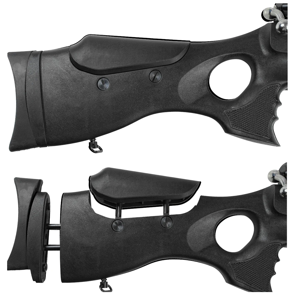 Stock – Thumbhole-style (TH) made of durable, impact-resistant polymer. Rubber inlays on the fore-end provide a secure grip, even with wet hands. A raised Monte Carlo cheekpiece aids both aiming and shoulder alignment. Ambidextrous design accommodates both right- and left-handed shooters. The rubber buttpad absorbs recoil for enhanced shooting comfort. Adjustable cheek rest via set screws. Underside of the stock grip includes two magazine ports for quick access to spares.
