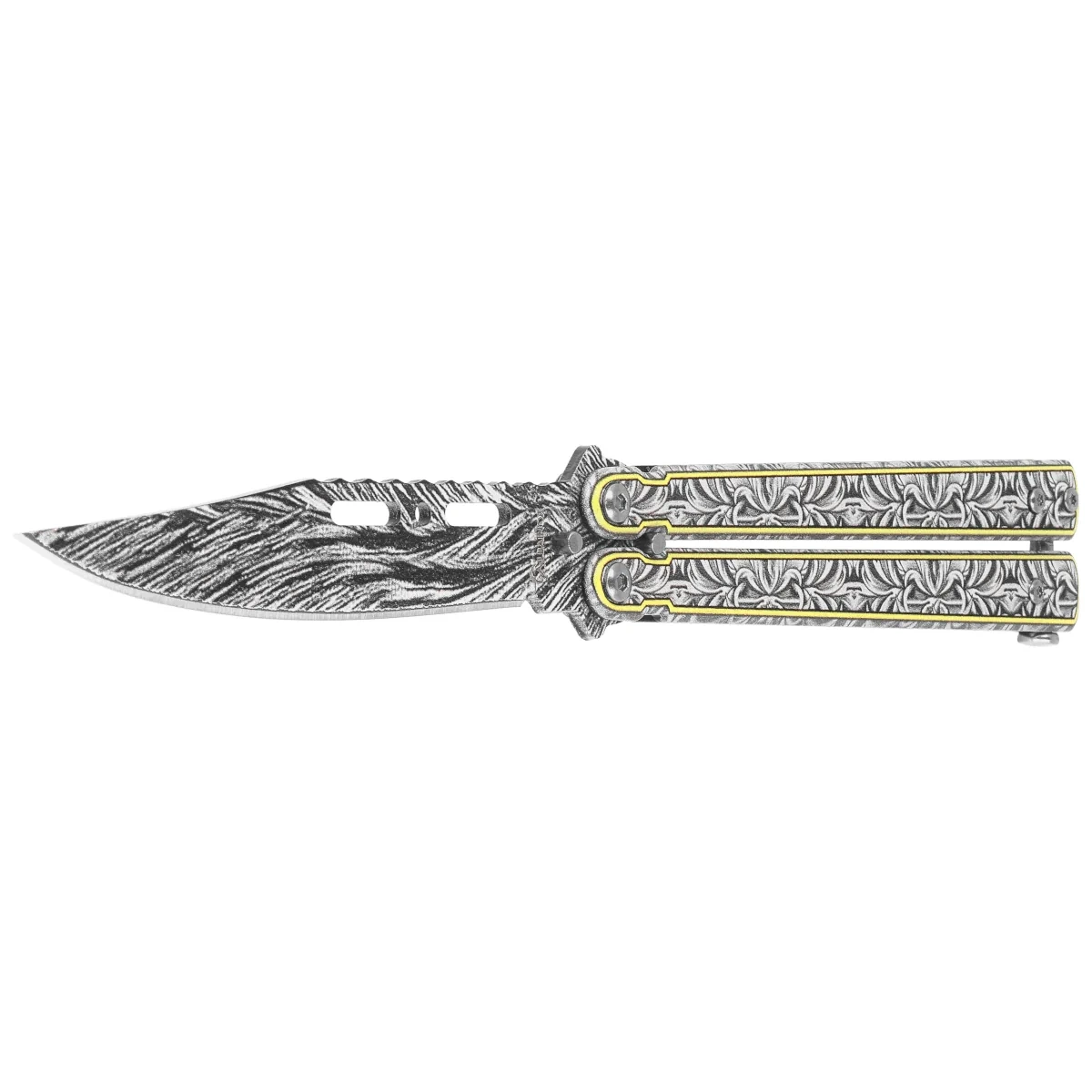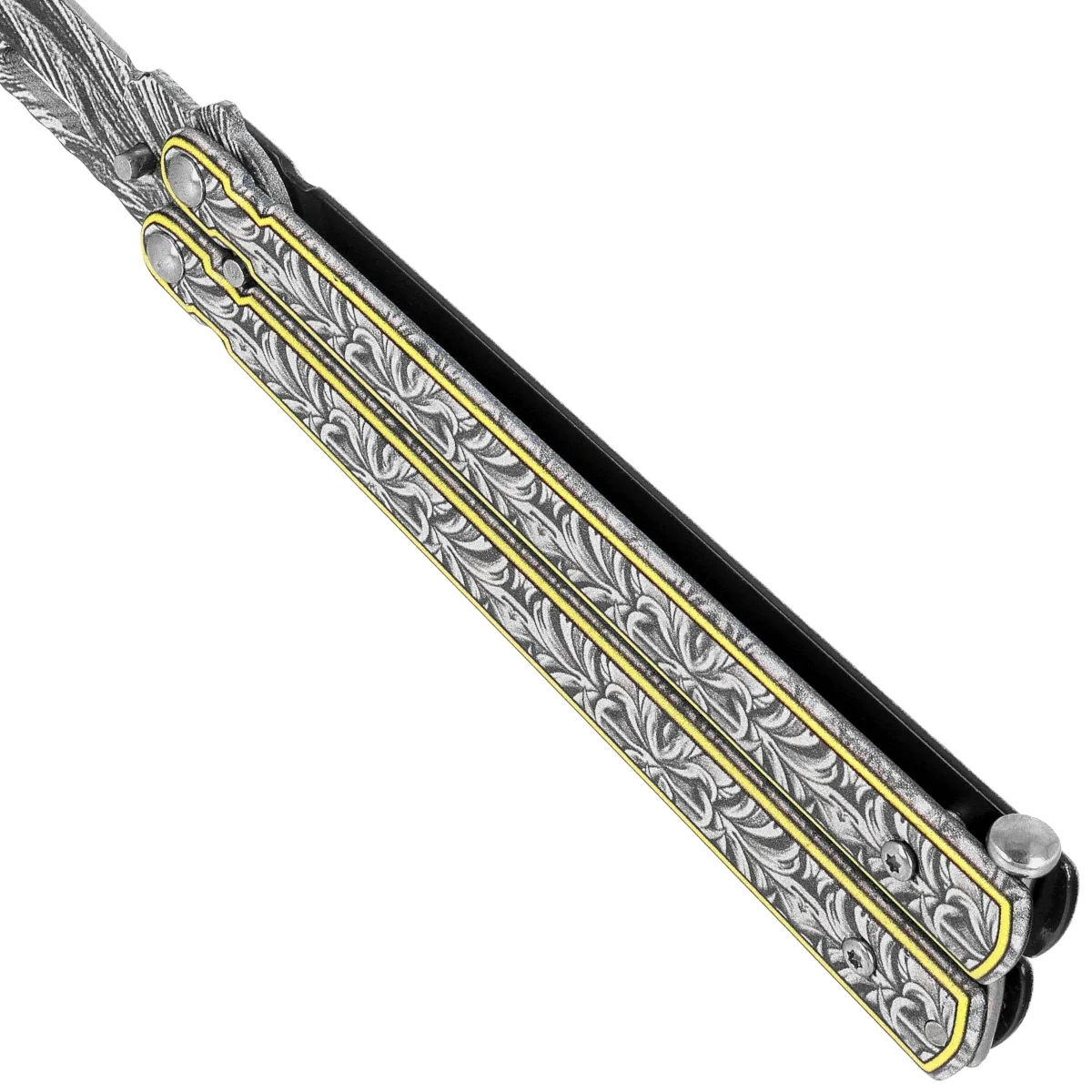 - Classic Damask Stainless Steel, Damascus Pattern - a classic butterfly knife from Martinez Albainox with a clip point blade and decorative Damascus pattern. The all-steel construction combines striking looks with training and collector functionality.