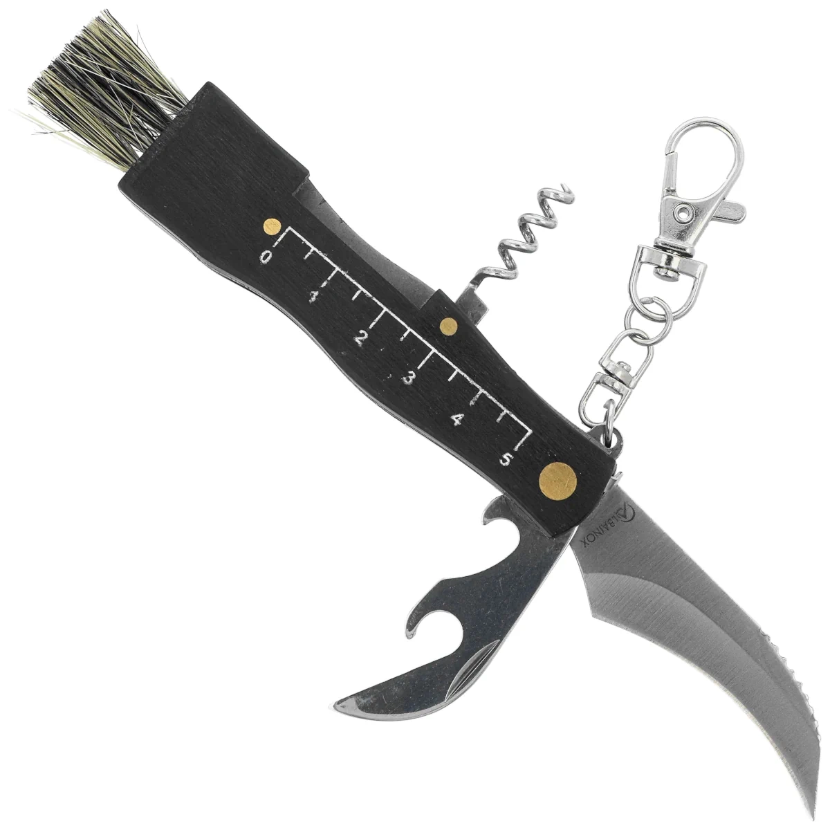 • Setera Multi Madera Wood, Satin - multifunctional mushroom knife from Martinez Albainox with curved Blade made of 3Cr13MoV steel, wood Handle, brush, tweezers, can and bottle opener, corkscrew, key ring. Practical and useful.