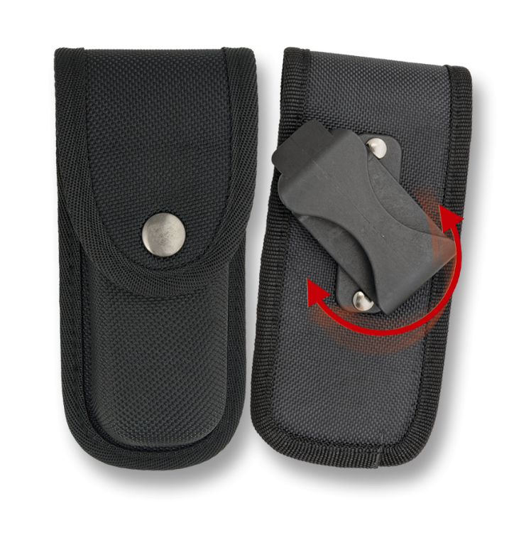The case is equipped with a swivel belt holder, which allows attachment to a waist belt, backpack or MOLLE panel, ensuring stability and comfortable carrying. The snap closure allows for quick opening and secure closure, protecting the contents from accidental falling out. The internal space will accommodate most standard folders, multitools and tactical flashlights, offering safe storage and transport in field or urban conditions. With its black, low-profile finish, the 34080 integrates discreetly into everyday clothing and outdoor equipment. It's a solid choice for those who want simplicity, functionality and reliability in their daily use of EDC gear - regardless of the operating environment.