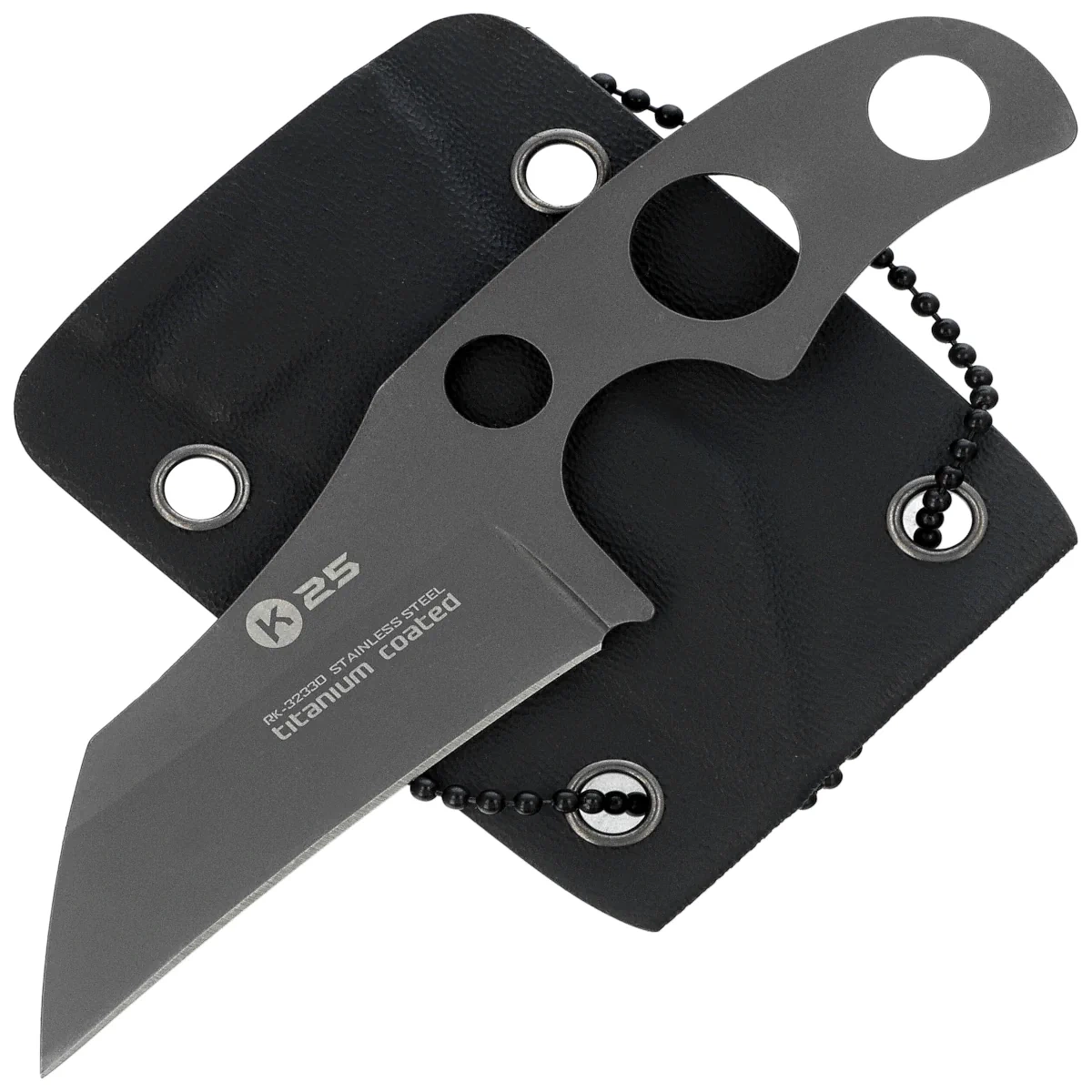 - RK-32330 Neck Knife Titanium - compact neck knife with full-steel construction, titanium-coated 7Cr17Mov steel blade and Kydex sheath with chain. Lightweight and discreet, it is ideal for everyday EDC use and tactical tasks.