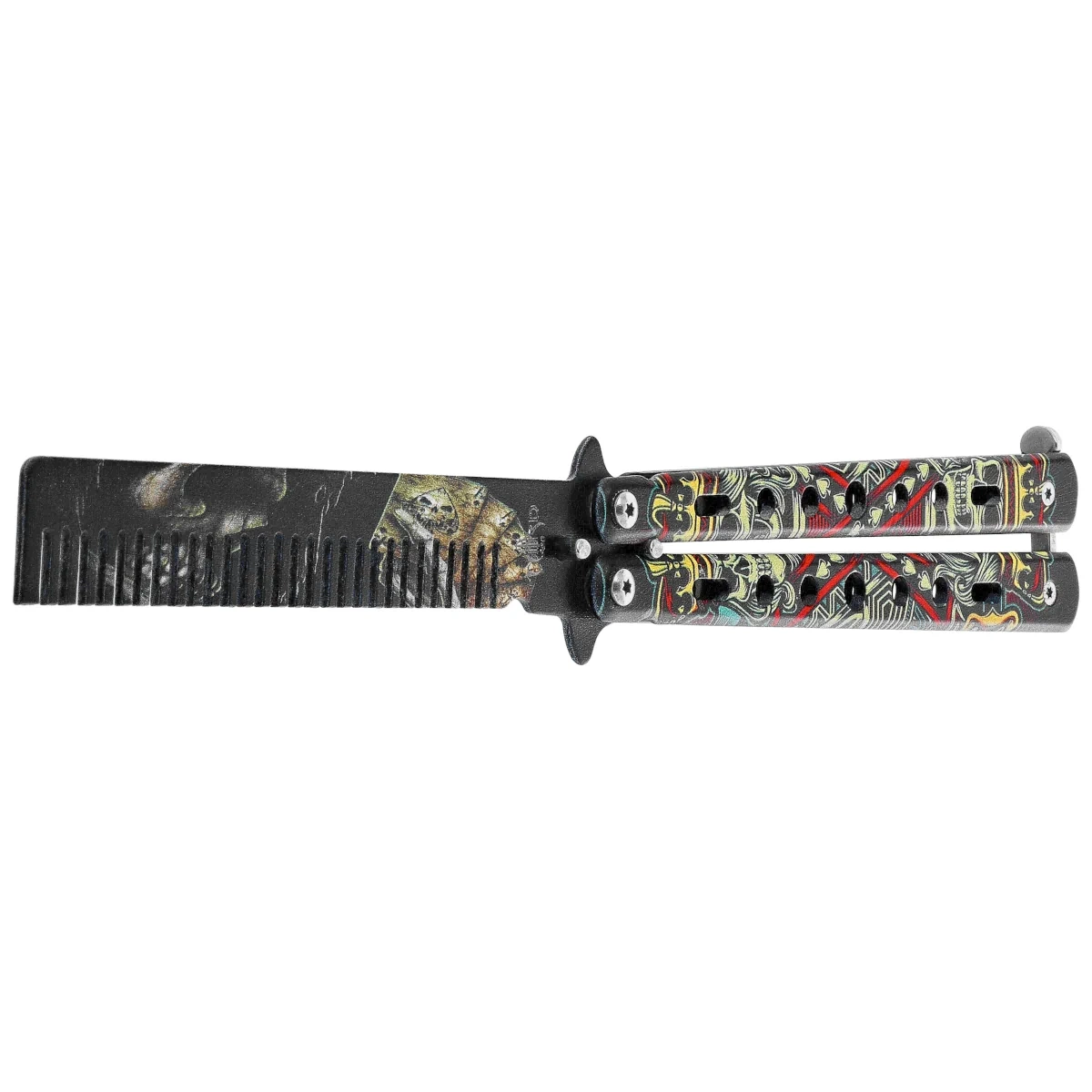 Nóż składany motylek Third Decor Habitat Balisong K3100 3D Poker Skull Print 420, Comb-Style Blade 420 (TH-K3100)