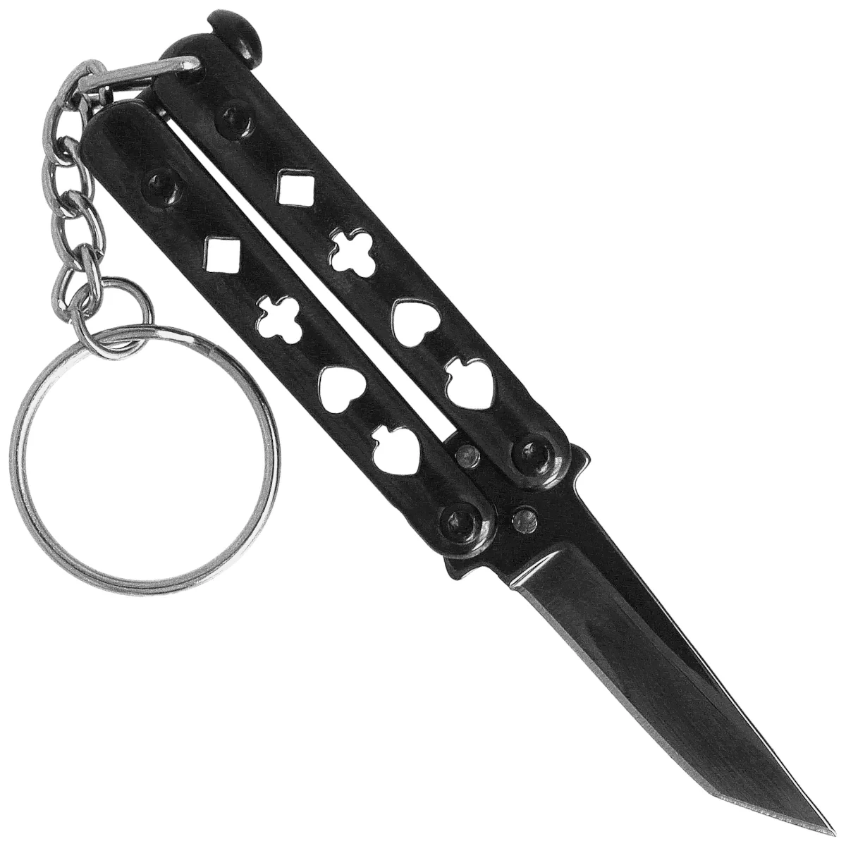 Third Decor Habitat Balisong Poker Knife Keychain, Black Stainless Steel, Black 420 (TH-K0101N)