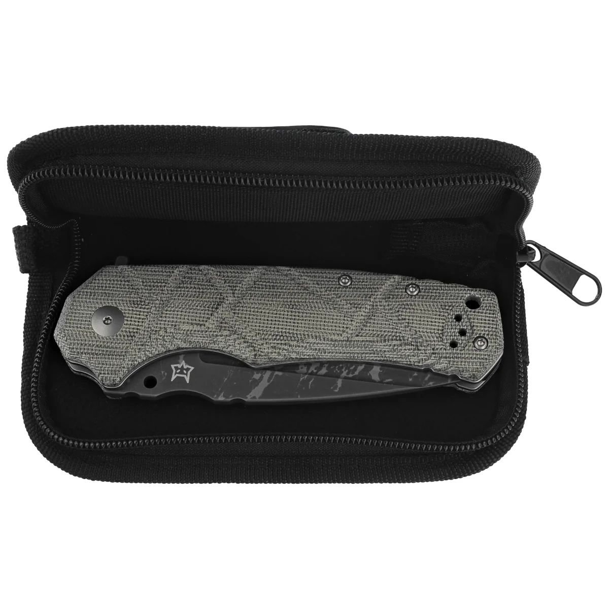 Handle - made of durable, moisture and mechanical damage resistant Canvas Micarta composite in OD Green shade. The distinct texture of the material, combined with anatomical profiling and finger indentations, provides a stable grip and precise control, even when working with gloves or in wet environments. Rounded edges increase handling comfort during prolonged use. An additional black G10 backspacer reinforces the design and increases its rigidity. At the end of the Handle there is a hole for a safety cable, allowing you to mount a paracord or lanyard. The whole is complemented by a solid steel clip, allowing the knife to be carried discreetly and securely in a pocket in tip-up position. Precise fit of the components and solidity of the construction make the FX-557 a functional, rugged folder for everyday and field EDC applications.
