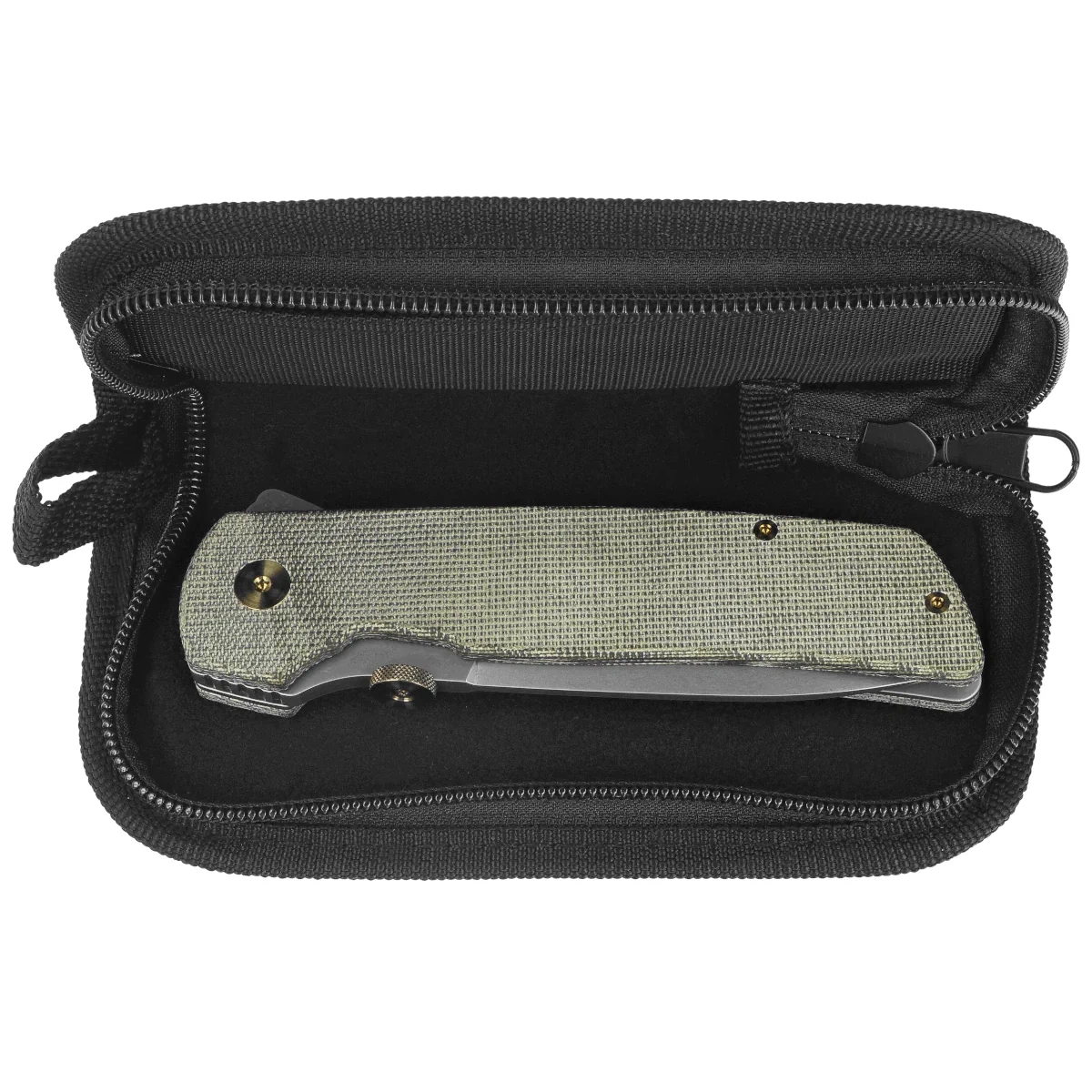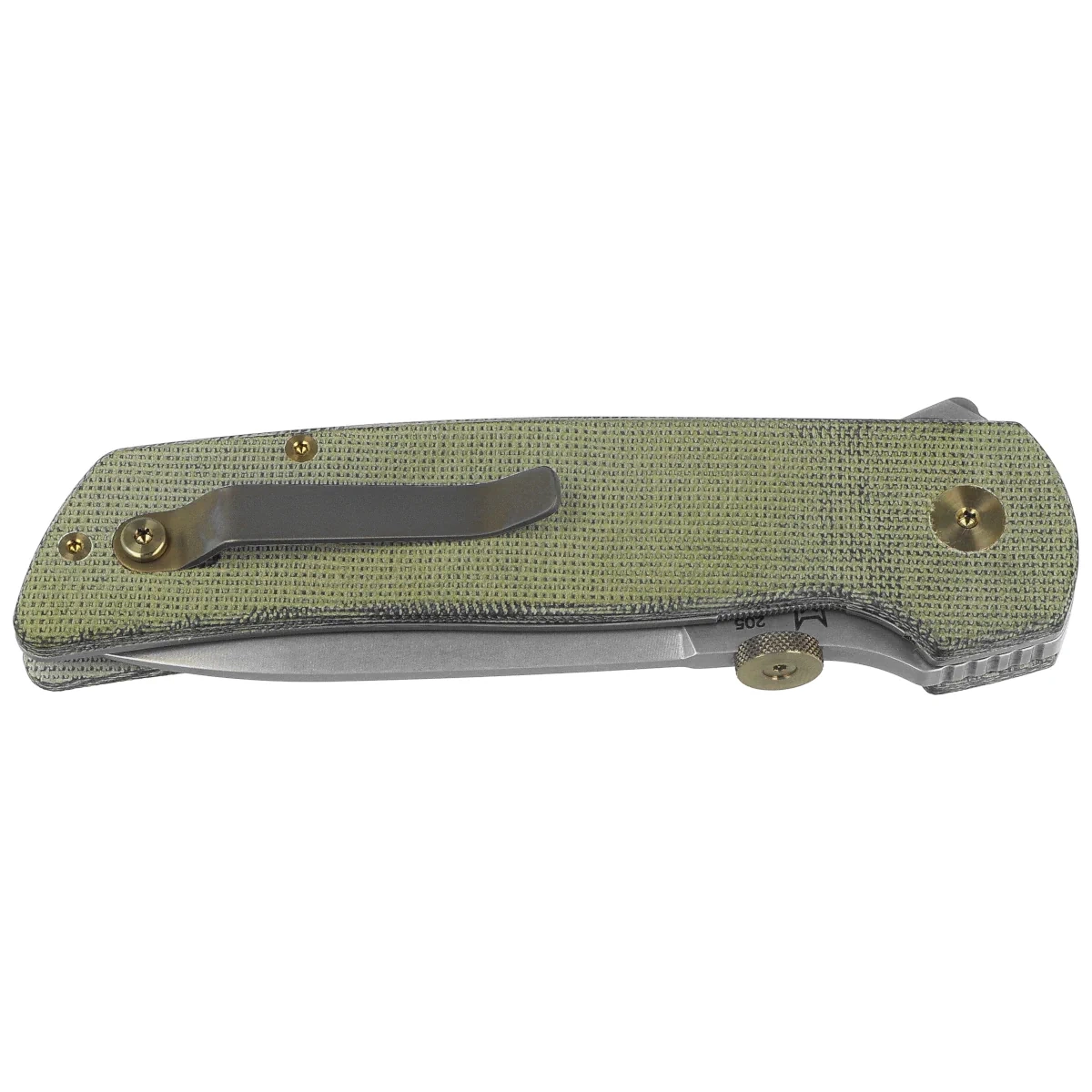 Handle - made of high-strength Canvas Micarta composite in OD Green shade, a material resistant to moisture, dirt and mechanical damage. Gentle chamfering of the edges and anatomical profiling of the handle ensure natural positioning of the hand, increasing stability and control of knife handling during prolonged work. The structure of the material retains its grip even in harsh conditions, ensuring a firm grip even when wearing gloves or in increased humidity.