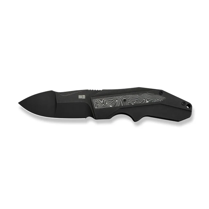 Handle - made of milled titanium 6Al-4V, providing high rigidity, mechanical resistance and lightness. The main panels are enriched with inlays of a unique composite Aluminum Foil Carbon Fiber, offering a three-dimensional optical effect and increased surface grip in all conditions. Gentle edge profiling and ergonomic finger undercuts promote comfort and control, even during prolonged use in off-road or EDC environments. The design is reinforced by a precision-fitted backspacer and a deep-carry tip-up clip , allowing the knife to be carried discreetly and steadily in a pocket. The entire design is maintained in a sleek, minimalist aesthetic, combining modern engineering with the superior workmanship typical of Cecchini's designs in the premium WeKnife line.