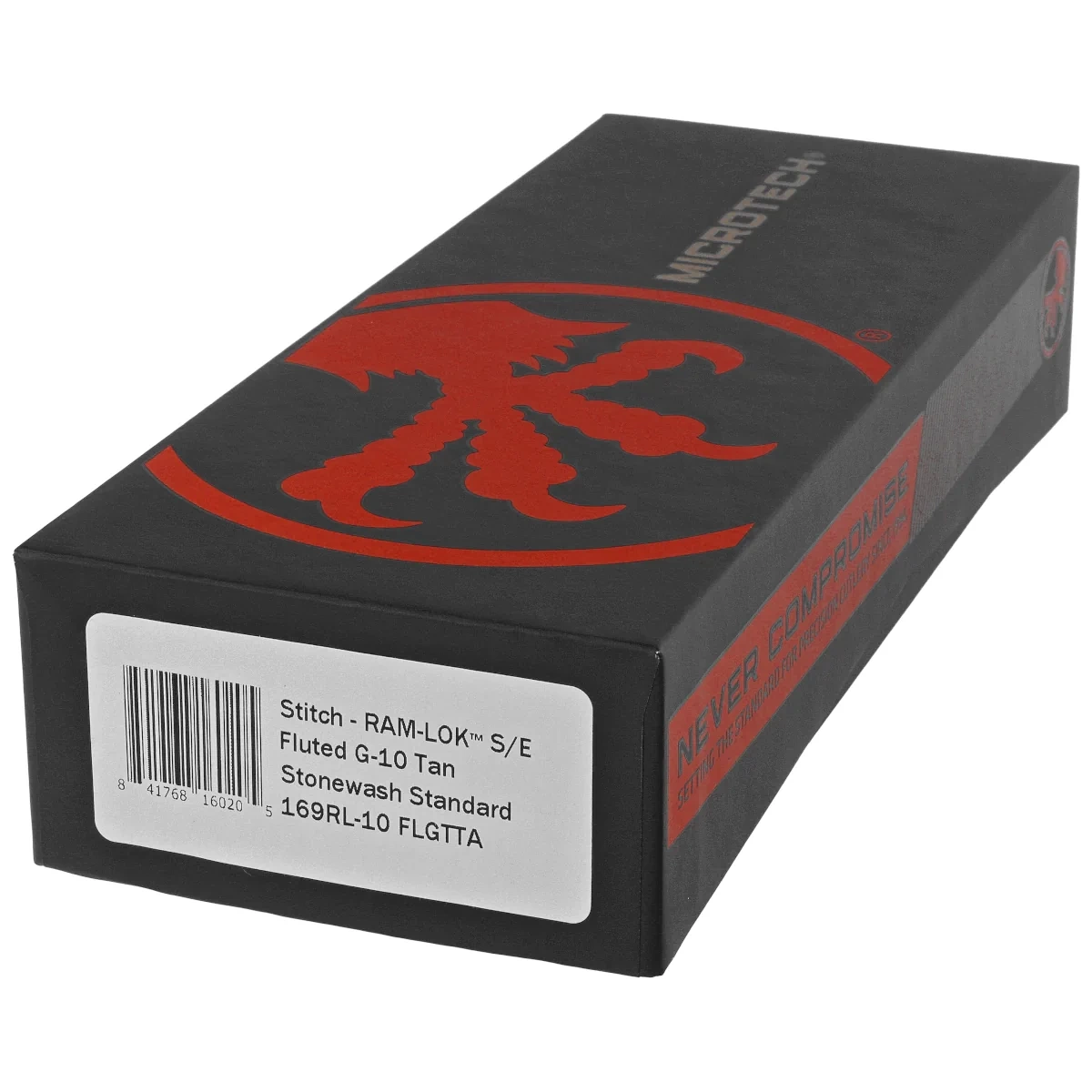 Stitch Ram-Lok S/E Tan Fluted G10, Stonewashed manual version of the bold design of the versatile tactical knife, the result of a collaboration between Sebastijan Berenji and Microtech. A wide Blade and a simple handle, comfortable in every grip, give you a strong tactical knife made with attention to the finest details and from the best materials. A faithful companion that will never disappoint