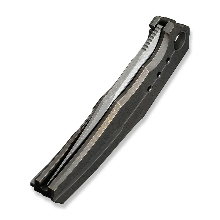 Kyklos Bronze Titanium, Gray Stonewashed/Satin is an advanced EDC folder combining perfect craftsmanship, modern design and functionality necessary for everyday use. The design, based on a minimalist, compact construction, offers the user the highest quality of workmanship, ergonomics and full operational reliability in all conditions of daily carry. Blade with clip point profile , made of Böhler M390 powder steel , provides exceptional sharpness retention, high abrasion resistance and excellent edge stability in long-term use. The Two Tone, gray stonewashed / satin finish gives the wedge a modern, technical look and effectively masks minor signs of use. The Handle is entirely made of milled titanium 6Al-4V, delicate finger indentations and subtly rounded edges guarantee a stable grip and high comfort even during prolonged use. The opening system based on the flipper, supported by ceramic ball bearings, allows smooth and fast unfolding of the blade, while the frame lock mechanism ensures stable locking in the working position. The whole is complemented by a titanium Tip-Up clip . The WE23086-2 is a combination of modern aesthetics and technical precision, which will meet the expectations of the most demanding users of premium EDC knives.