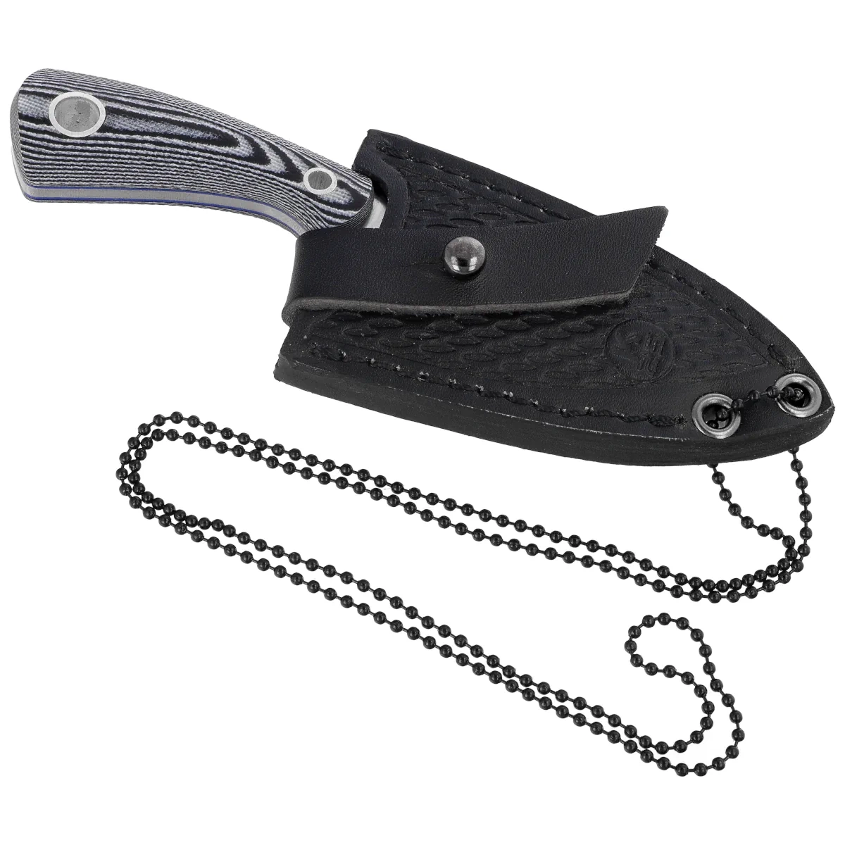 - 32561 Boot Knife Black/White G10, Satin - EDC neck knife with full tang construction, 7Cr17Mov steel blade with satin finish, G10 composite handle and classic leather sheath with neck chain.