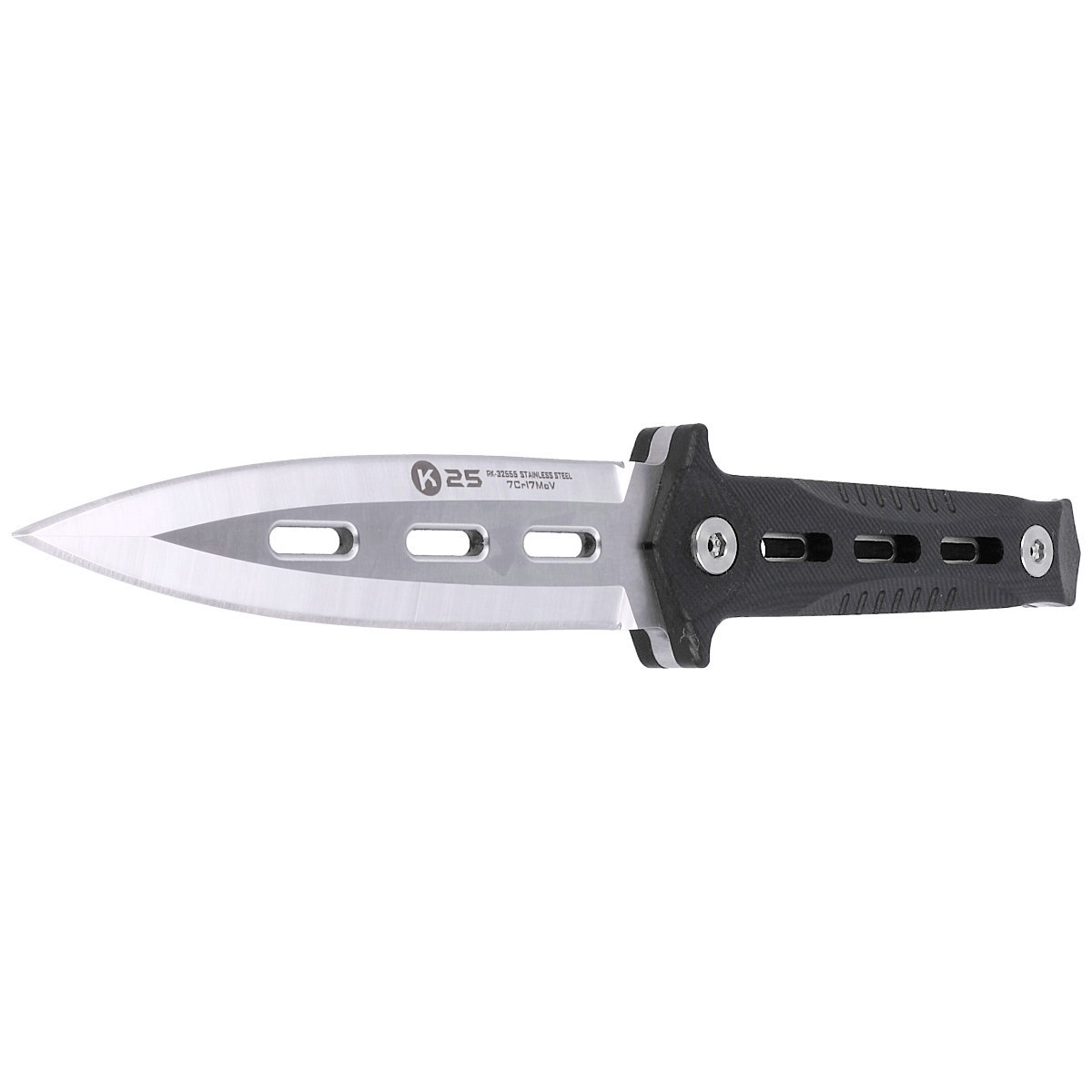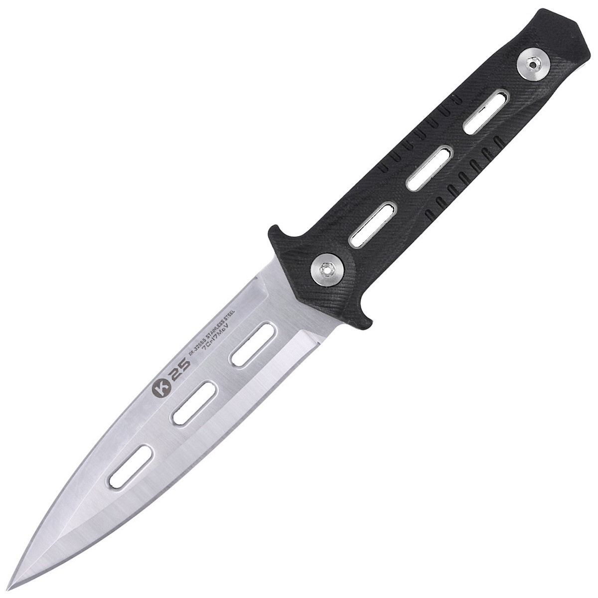 - Boot Knife Black G10, Satin - a full-size tactical dagger knife from K25 with a 7Cr17MoV steel blade with satin finish and a durable G10 composite handle. Equipped with a Quick Release sheath.