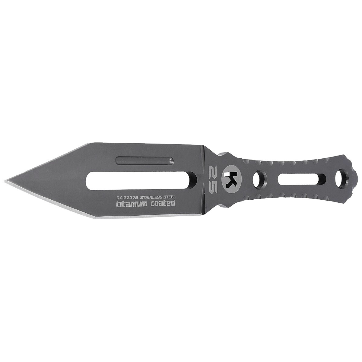 - K25 Thrower Knife Titanium 7Cr17MoV (32375) - a sturdy full-tang throwing knife with a balanced design and titanium coated 7Cr17MoV blade. A precision tool for training and recreational throwing enthusiasts.