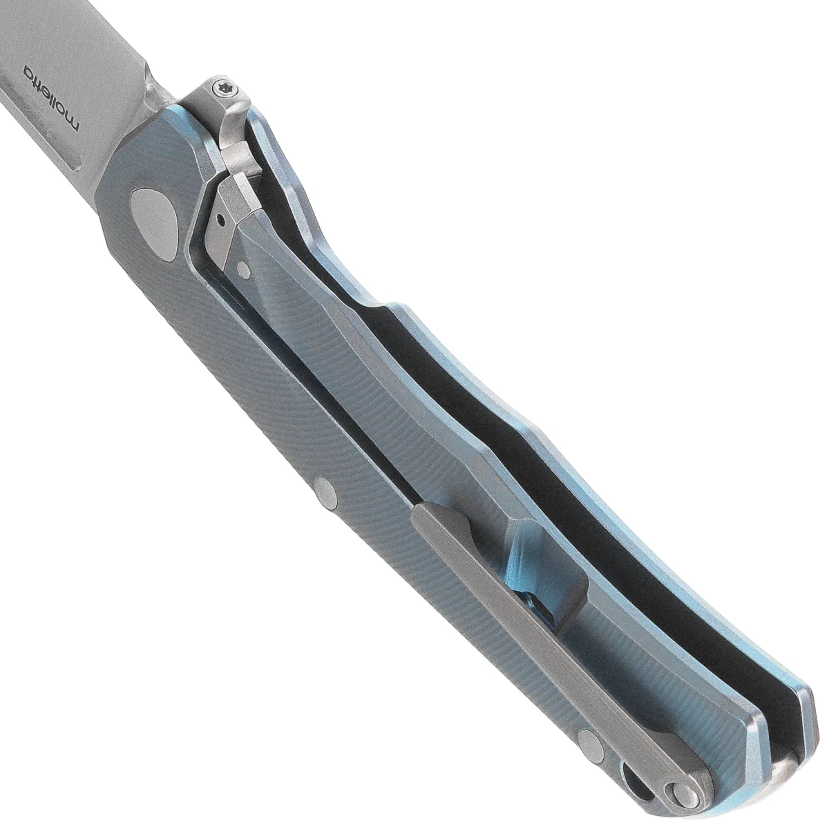 Q4ttro Blue Titanium, Satin is an advanced EDC folder designed by Michele “Molletta” Pensato - an Italian knifemaker known for his innovative solutions. The design of the model is based on an elegant, lightweight 6Al-4V titanium frame, enriched with a FatCarbon composite insert , which provides not only an interesting visual effect, but also increased grip. At the heart of the design is the CPM MagnaCut powder steel Blade , which combines very high corrosion resistance with excellent sharpness retention and mechanical resistance - qualities desirable in everyday tools with increased durability. The satin finish adds a technical, elegant touch and reduces the visibility of signs of use. The Q4ttro features the innovative ReF (Removable Flipper) system , which allows the user to choose from four forms of opening: classic flipper, front flipper, nail hole or ambidextrous unfolding. Frame lock mechanism, ceramic bearings and titanium deep carry clip complete the package, making the Q4 model an exceptionally functional and ergonomically optimized premium EDC tool - for the most demanding users.
