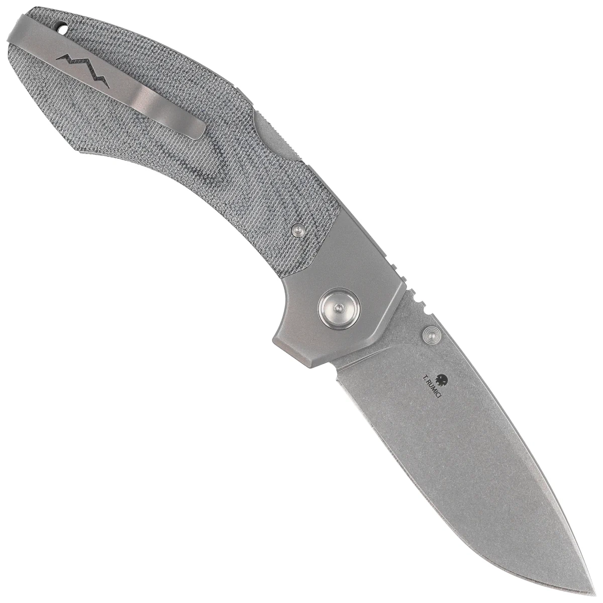 Handle - bolsters made of 6AL4V titanium , handle made of Canvas Micarta. Chamfered edges of the covers eliminate sharp edges. Grips are screwed to an intricately machined titanium backspacer, giving the assurance of many years of use. A two-position (right/left) deep-carry clip allows you to carry the knife discreetly in your pocket in the tip-up (blade tip up) position. In the back of the Handle a hole for threading a safety or decorative cord.