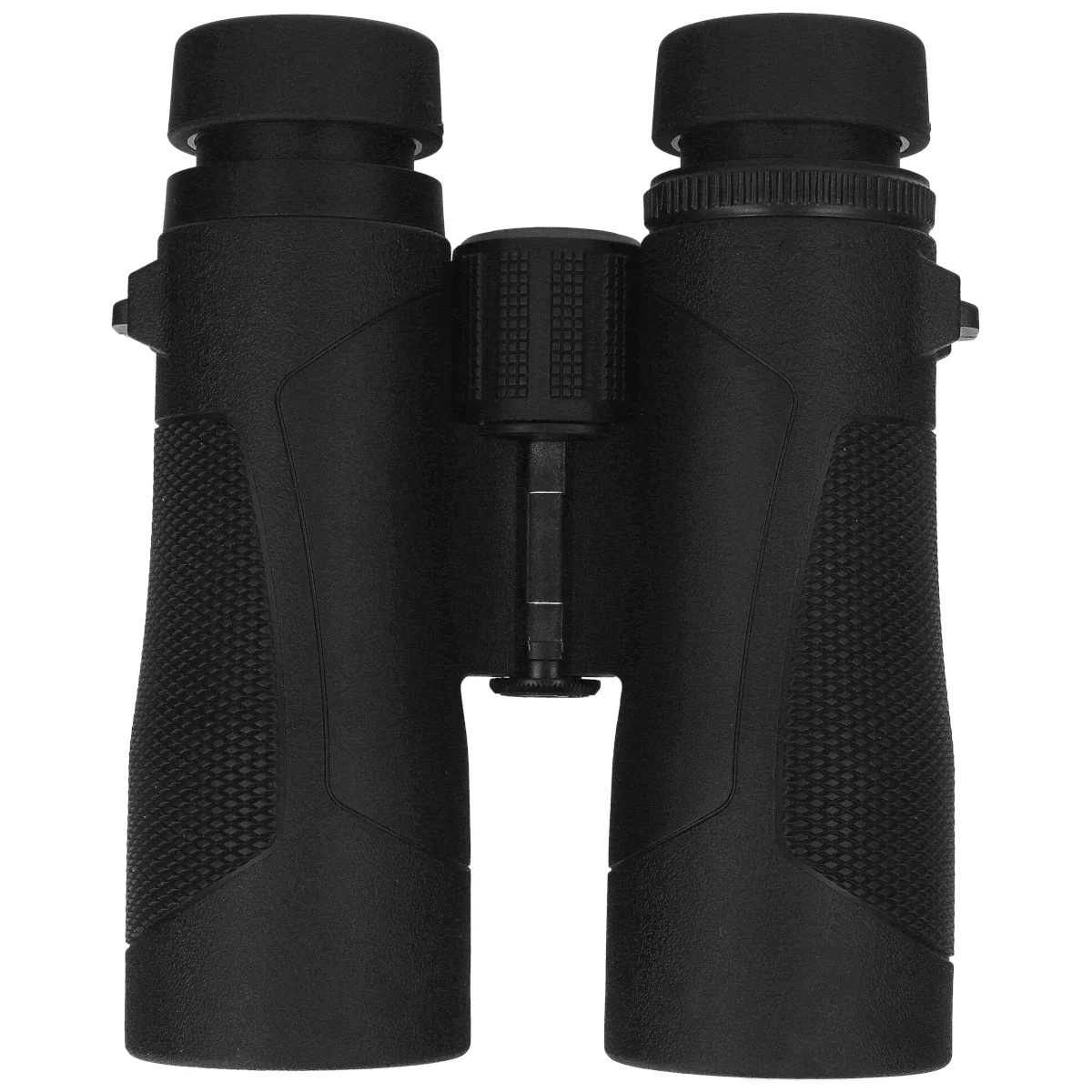 Equipped with BK-7 optical glass and a roof prism system. The Multi-Coated anti-reflective lens coatings ensure high image brightness and clarity, eliminating unwanted glare and light distortion. The wide field of view allows for scanning an area of 102 meters at a distance of 1000 meters. Focus adjustment is handled via a central knob on the bridge and an additional dial on the right eyepiece. The rubber-armored waterproof housing offers a secure, comfortable grip while protecting the optical system from impact and minor falls.