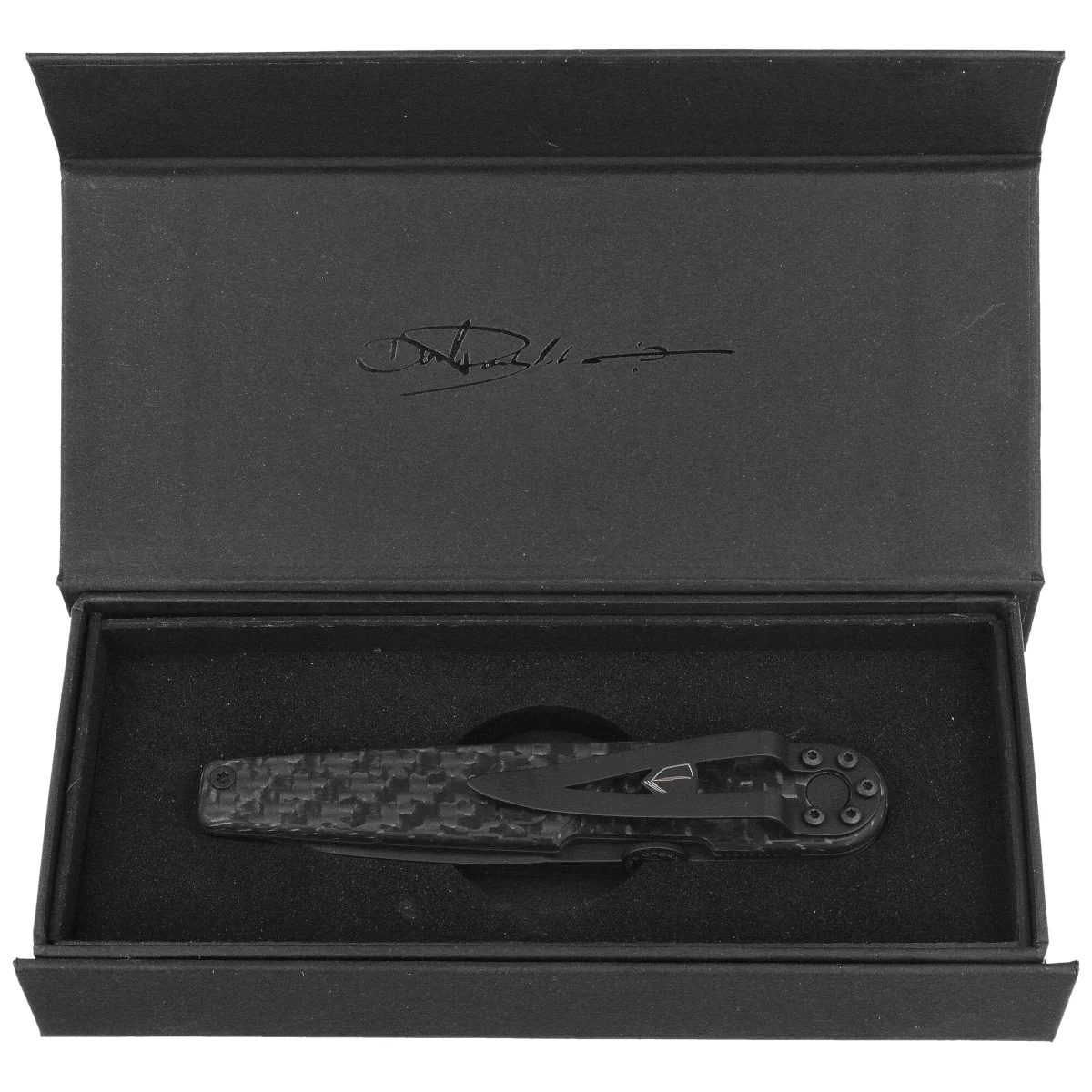 LKU01 Tenebra Carbon Fiber, Black DLC is a limited edition folding knife designed in collaboration with Danilo Rossi, creator of the Italian fighting style Lajolo di Cossano. Created in an edition of 100 pieces, this model combines tactical precision with a deeply rooted fighting philosophy to create a tool of exceptional functionality and collector value. The design of the folder with the possibility of transformation into a push dagger reflects the tenets of dynamic self-defense, where versatility, speed and reliability count. Blade is made of Böhler M390 steel , one of the most advanced premium powder steels. Thanks to its excellent sharpness holding, corrosion and abrasion resistance , the blade retains its performance even under heavy use. The Black DLC coating used enhances surface wear resistance and minimizes light reflections, giving the whole thing a tactical feel. The unusual geometry of the blade allows for effective cutting both in the classic grip, as well as in the piercing position. Handle made of carbon fiber in Tenebra finish provides high rigidity with minimal weight and elegant, technical aesthetics. The profile has been developed for tactical grips - both classic and vertical - allowing quick transitions between modes. The innovative Handle mounting system allows for a configuration that suits a specific use scenario. Model LKU01 Tenebra is a proposal for professionals, enthusiasts of modern combat systems and collectors, who expect from the knife not only precision, but also a deeper conceptual layer - a synthesis of applied tactics and movement school of thought.