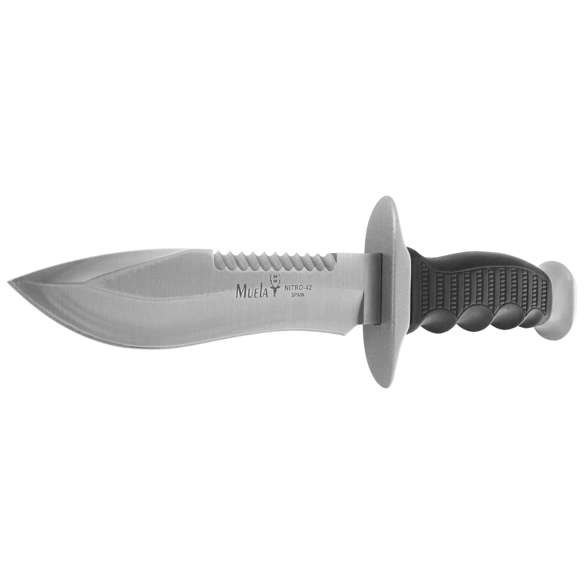 - Muela 85-162 a full-sized fixed-blade knife with a Bowie profile. Crafted from Nitro‑42 stainless steel, coated with a protective black finish, it features a durable handle made of rubber and zamak. Engineered for extreme field and tactical applications.