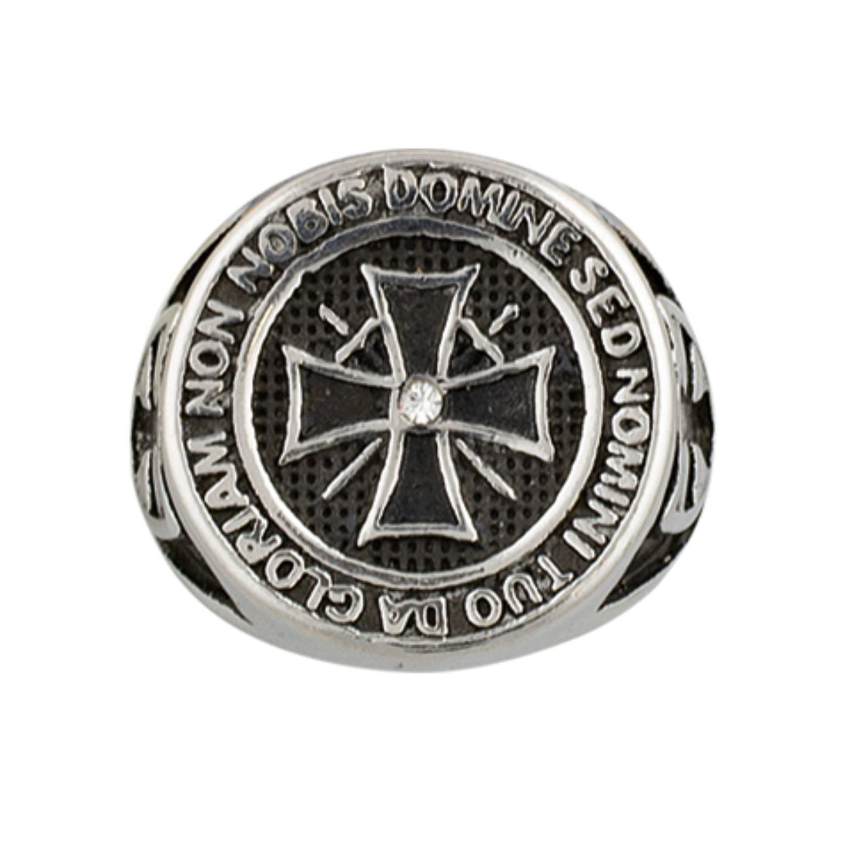 - Tole 10 Imperial Templar Cross Ring Ø19 (09980-19) - a stylized signet ring with the emblem of the Templar cross and the motto “Non nobis Domine, sed nomini tuo da gloriam”, made of polished metal. An ideal accessory for lovers of knightly symbolism.