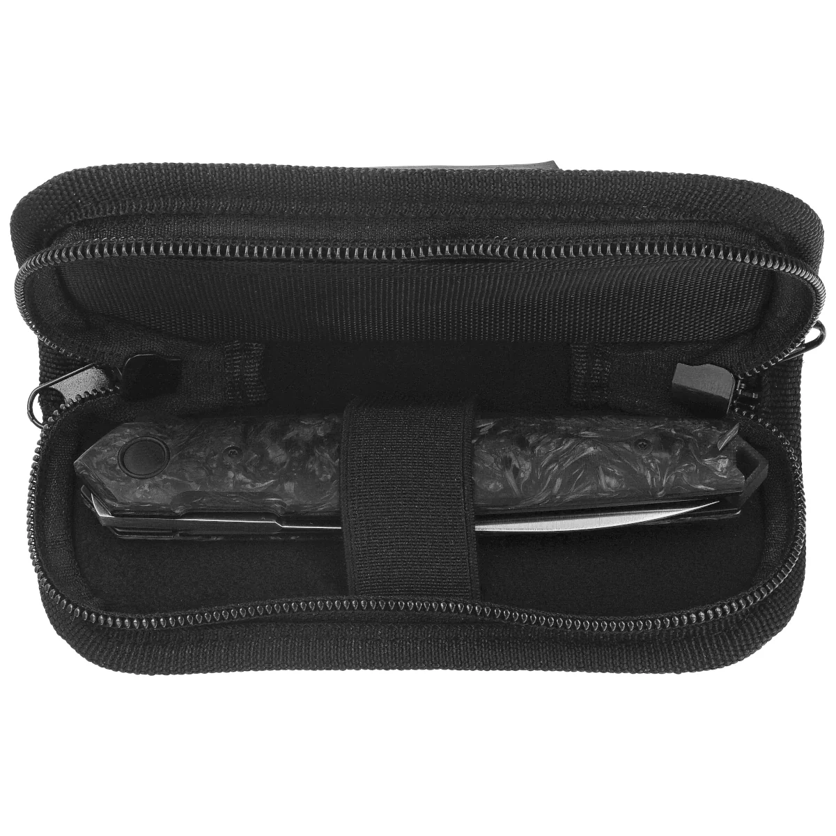 Handle - made of Dark Matter Fat Carbon composite, provides durability and comfortable grip even with wet hands. Subtle profiling improves ergonomics, and steel liners stabilize the overall design. The whole is complemented by a tip-up clip, allowing the knife to be carried discreetly in a pocket. The black G10 backspacer not only strengthens the construction, but also adds a visual accent. The rear eyelet allows you to mount a cord or bead. The design combines classic lines with modern materials, creating a construction that is sturdy, aesthetically pleasing and prepared for heavy use.