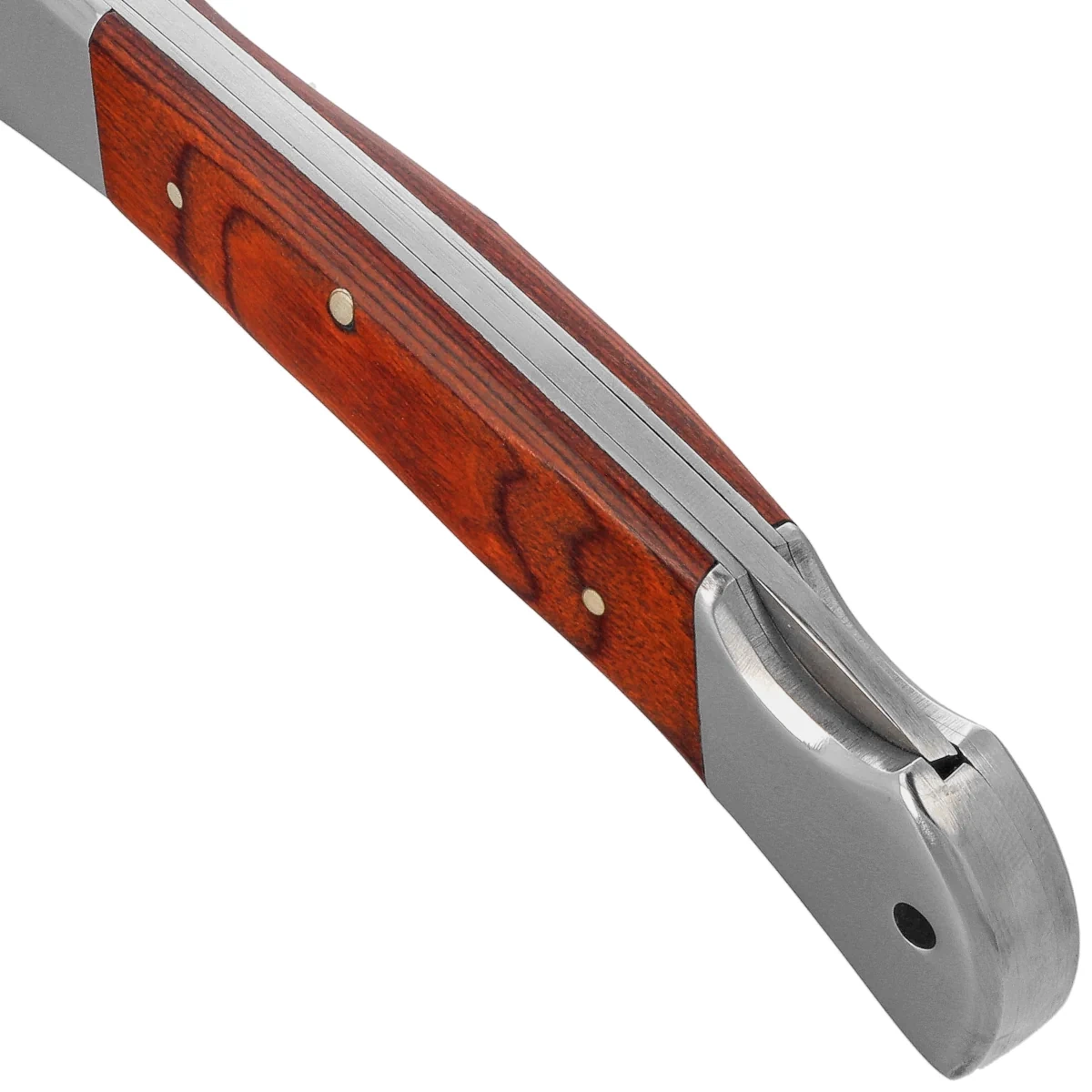 Handle - the body is based on steel liners, which provide structural rigidity, and the whole is finished with grips made of Pakka Wood - laminated wood soaked in resin. This material retains the appearance of natural wood, while offering increased resistance to moisture and temperature changes. The ergonomically contoured form fits well in the hand, and the back lock stabilizes the blade in the open position. This is a well-thought-out Handle for users who value classics, comfort and everyday functionality.