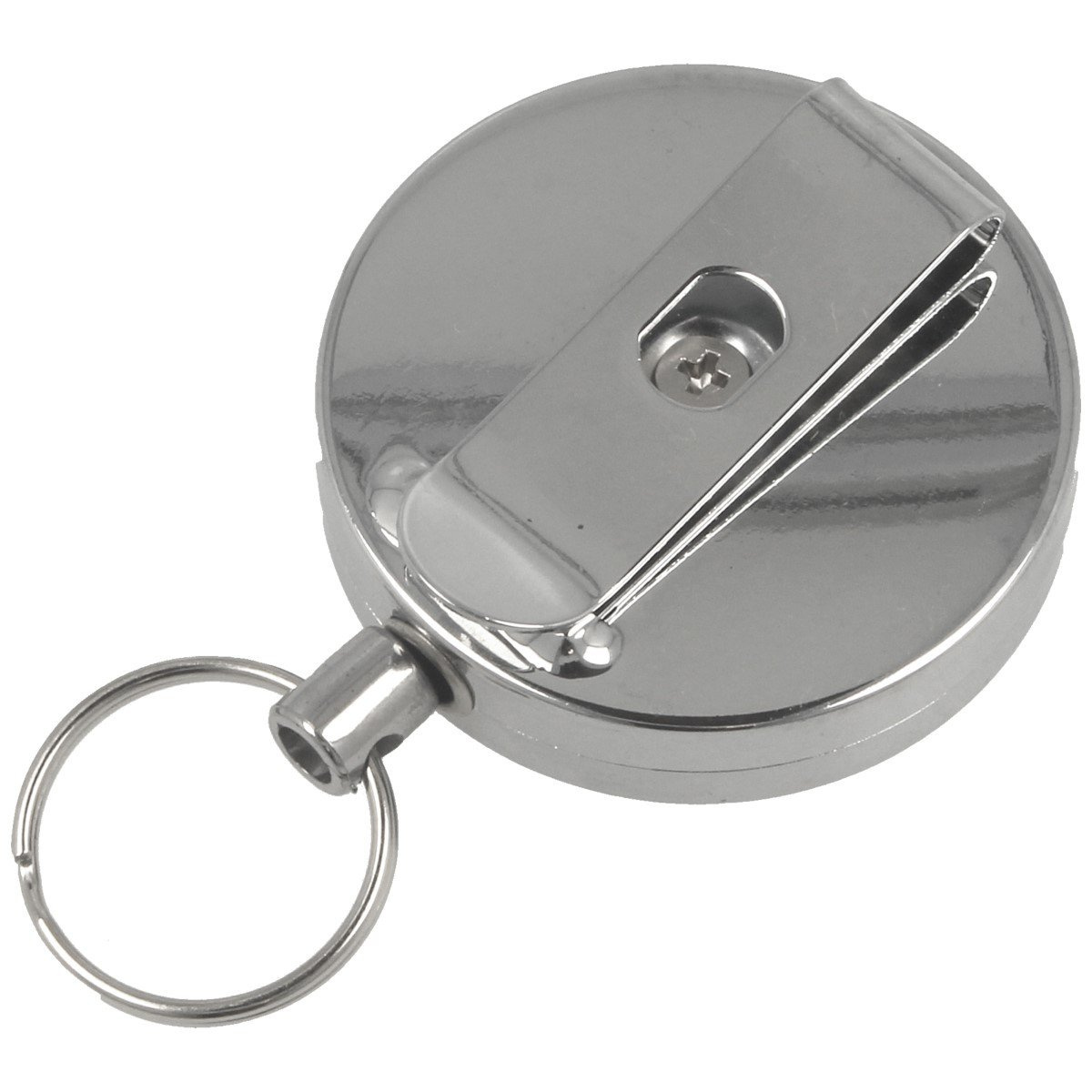 - 912200 universal lanyard from German company Herbertz Solingen with automatic retractable cord and O-ring. Protects against losing small items such as keys or a knife. Metal clip, 52mm diameter steel body, 100cm long cord.