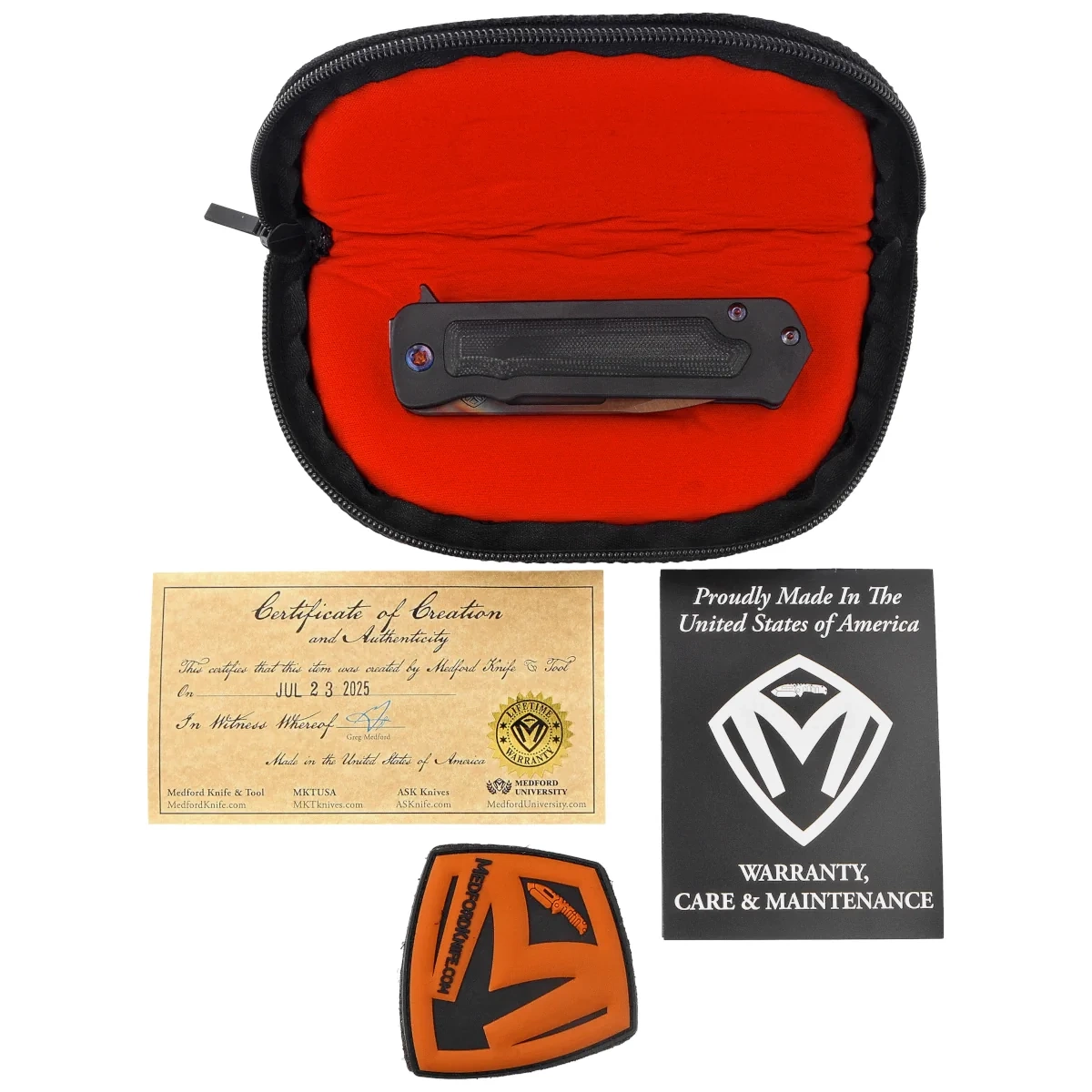 Medford TFF-4 Drop Point Knife Black Titanium / Black G10, Flm HW, Blue Clip, Vulcan S45VN by Greg Medford (MK1404VD-30PV-TFCF-BP)
