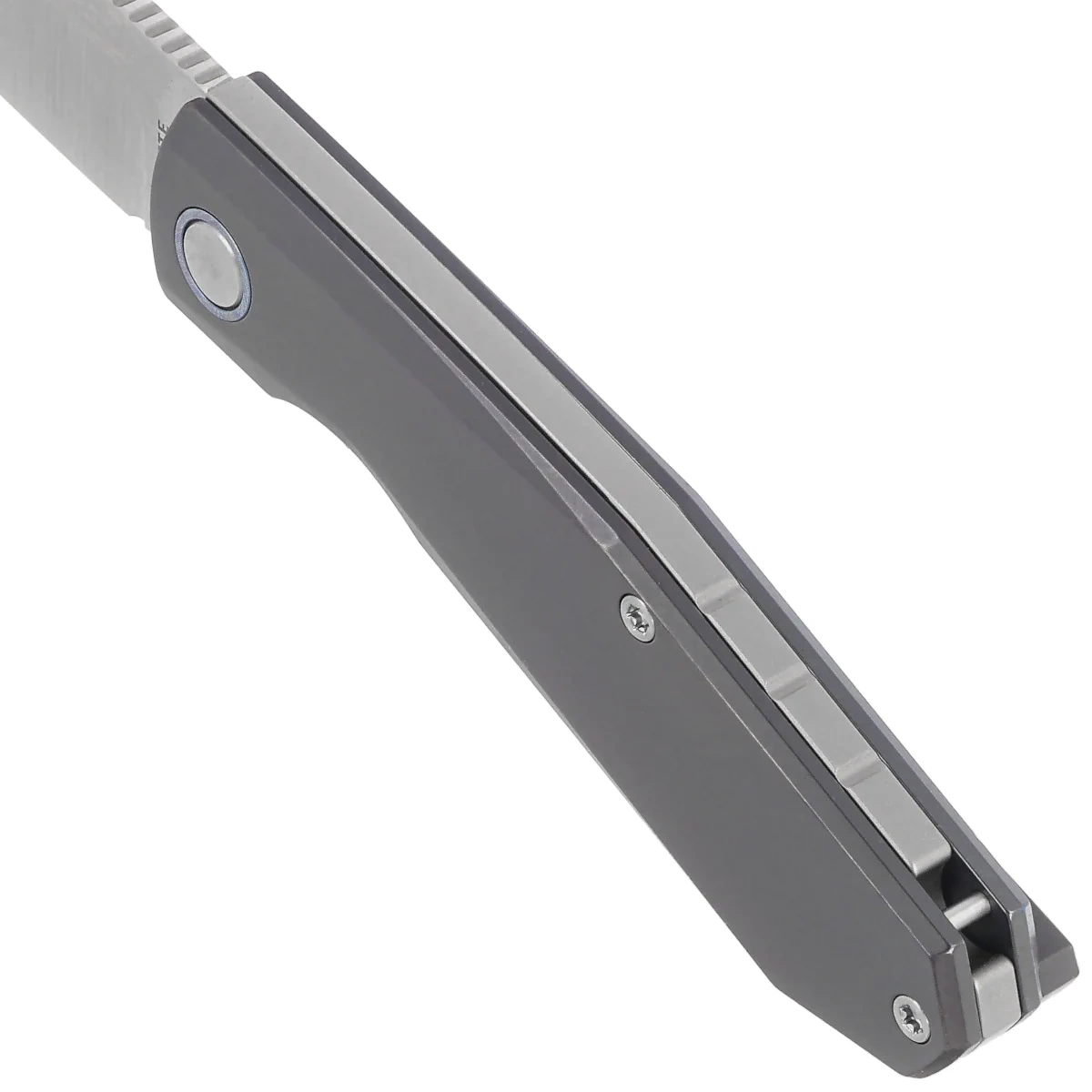 Blade - with a classic drop point profile was made of Böhler M390 powder steel, guaranteeing long-lasting sharpness and corrosion resistance. A concave (hollow) grind was used, which provides exceptional cutting ability and facilitates sharpening. The surface of the blade has been hand-finished with satin finish, which not only improves aesthetics, but also reduces material adhesion and facilitates maintenance. A hole in the Blade allows ambidextrous opening, and milling (jimping) on the back promotes thumb stabilization, increasing control in precision cuts.