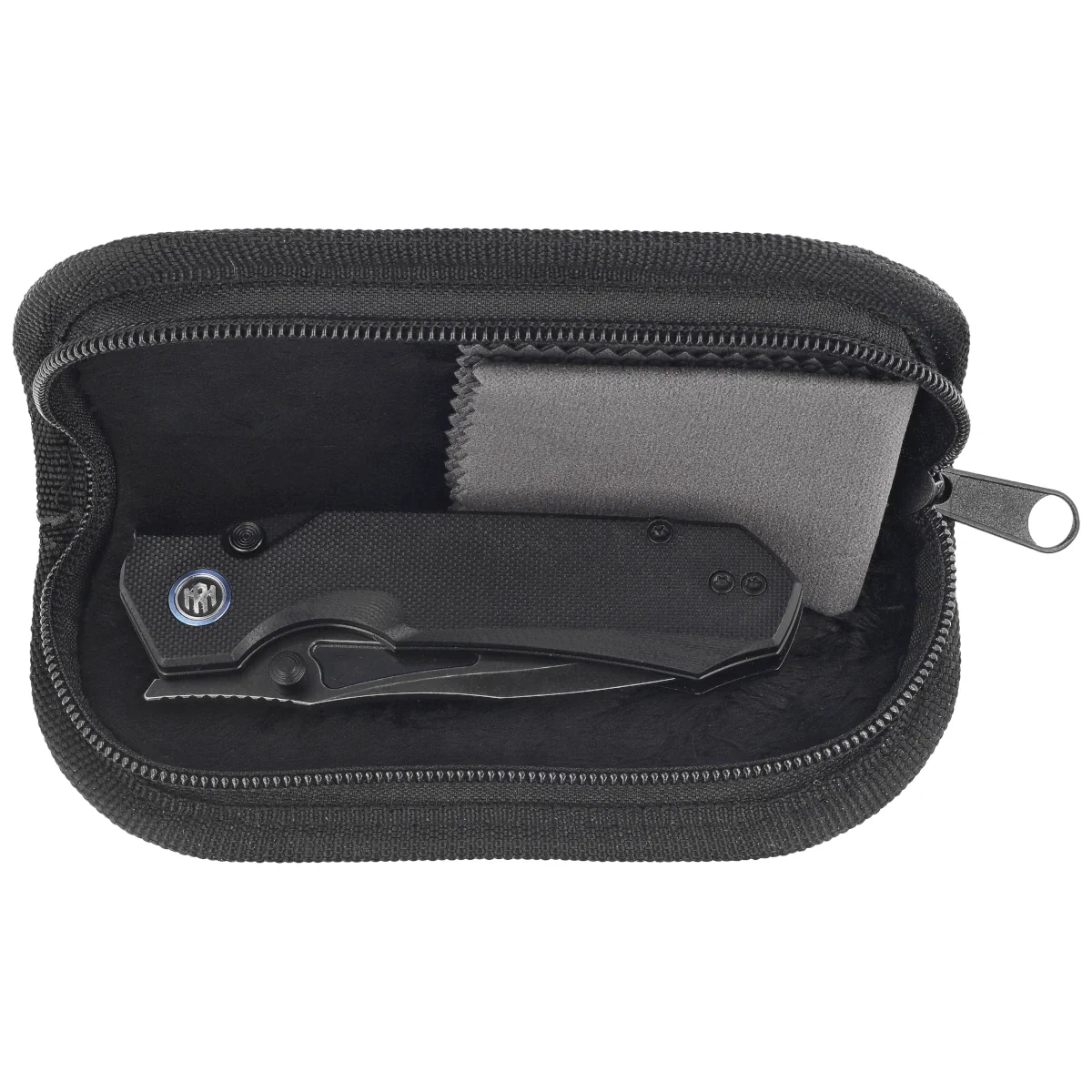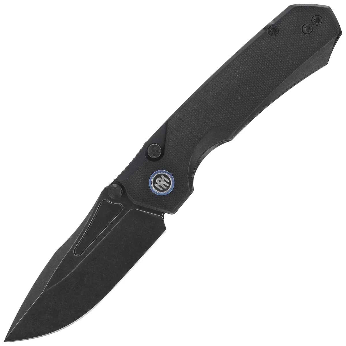 Blade - drop point type , finished by Stonewashed method and then coated with black coating based on titanium. The long cutting edge, with a prominent belly, converges toward the needle-sharp tip of the wide blade. The thickness of the blade provides high strength while the high, flat grind guarantees excellent cutting properties. Ceramic ball bearings are responsible for the smooth and smooth operation of the blade advancement mechanism. A front flipper flipper for quick opening, the knife can also be opened using a double-sided peg in the wedge(Thumb Stud) or by gravity. On the back of the upper jimping wedge, notched thumb rest. Button Lock mechanism.
