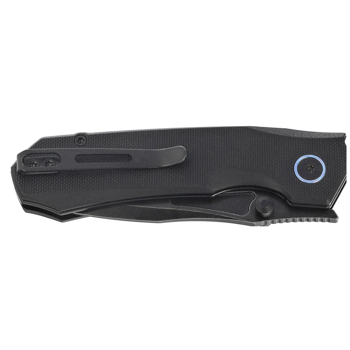 - Rhino Black G10, Black Stonewashed Titanium handy, compact EDC folding knife. Blade drop point made of D2 tool steel, fast Front Flipper blade for opening and G10 handle. Excellent value for money! Bestseller!