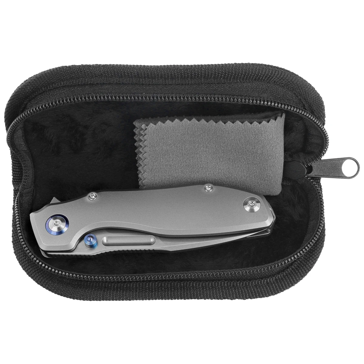 Handle - made of 6AL4V titanium has been precision CNC-machined and finished with ceramic sandblasting, which gives it a satin look and increases abrasion resistance. Three-dimensional embossing and profiling improve comfort in any type of grip. The interior is reinforced with a full backspacer, ensuring structural integrity. The frame lock used is equipped with a steel inlay and overtravel stop mechanism , which protects against excessive arm deflection. A deep-carry clip and a concealed cord hole increase functionality during everyday carry. The whole thing is complemented by an innovative removable/reversible flipper tab system , allowing the opening to be configured according to the user's preferences.