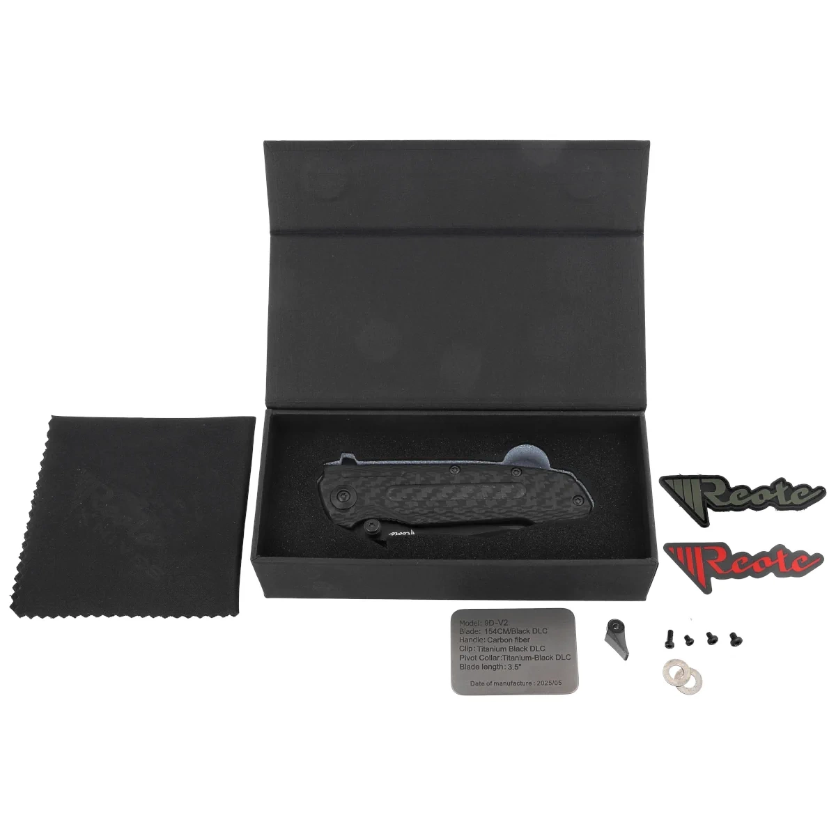 Reate District 9 V2 Knife Black Titanium/Carbon Fiber, Black DLC 154CM (9D-V2 TDLC DLC)