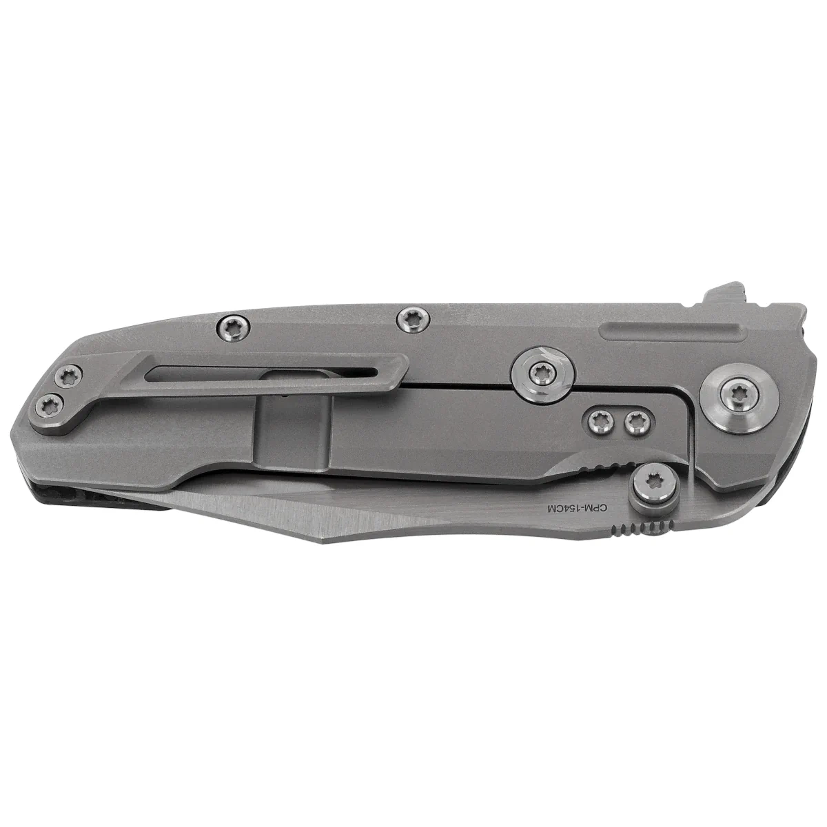 The District 9 V2 Dark Bead Blast Titanium / Carbon Fiber, Satin from Reate brand is an excellent example of combining industrial design with engineering precision. This advanced EDC folder was designed for users who expect both the highest quality of workmanship and a clearly defined design. Its austere form, minimalist lines and technical details make it a tool that is not only functional, but also aesthetically unique. The blade is made of 154CM stainless steel, valued for its high edge retention and corrosion resistance. The clip point profile, satin finish and flat grind provide excellent cutting properties and aesthetics at the level of premium knives. The mechanism is based on ball bearings, which in combination with the flipper gives a smooth and fast opening. Handle is made of titanium and Carbon Fiber composite, providing a comfortable and convenient surface. The whole is complemented by a titanium backspacer and deep carry clip made of the same material. A reliable frame lock with a steel inlay provides security and stability during operation. District 9 V2 is an offer for collectors and enthusiasts of modern tactical knives, looking for uncompromising functionality and visual impact.