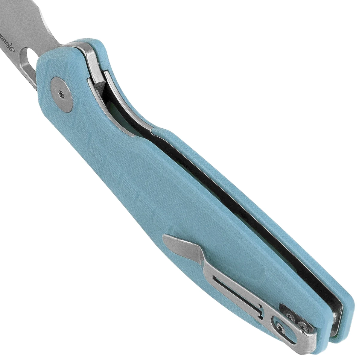 Handle - made of G10 composite guarantee lightweight, high strength and secure grip even in wet conditions. Textured surface improves grip without causing excessive wear. Button lock ensures easy locking and unlocking of the blade, while the blade opening promotes quick opening. A reversible deep carry clip allows discreet carrying, while a lanyard hole enhances attachment options. Ergonomically shaped handle provides comfort during prolonged use.