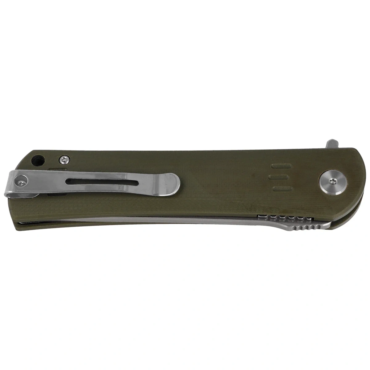 The Kendo Army Green G10, Stonewashed / Satin from Bestech Knives is a massive EDC folder, designed for users expecting durability, precision and full control in everyday conditions. Its form is based on a combination of D2 tool steel, known for its high abrasion resistance, and durable handle materials, creating a design suitable for both urban use and more demanding outdoor applications. The tanto-type blade profile gives the knife an aggressive, functional character and increases piercing efficiency. The sharp edge and dynamic blade geometry allow precise cutting guidance while maintaining penetrating power. Ball bearing mounted flipper guarantees smooth and quick operation, even when wearing gloves. The Handle is made of durable G10 composite, whose milled structure and surface texture provide a secure grip regardless of environmental conditions. The shape of the Handle is adapted to the natural alignment of the hand, which increases comfort for prolonged work. The sturdy liner lock stabilizes the blade in the open position, and the deep carry clip allows for discreet and convenient carrying. The Kendo model has won recognition among users as one of the best-balanced knives in its class - it combines tactical aesthetics, mechanical robustness and ergonomics, which translate into functionality in everyday use.