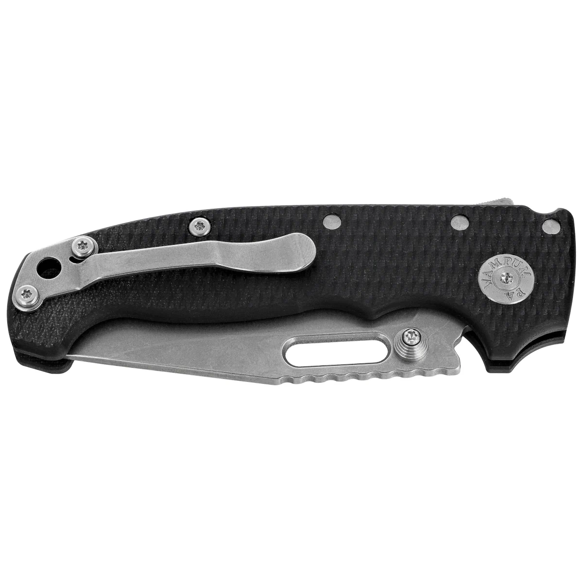 Handle - milled G10 composite grips, distinguished by lightness, stiffness and resistance to external conditions. The tactile texture and profiled undercuts promote a secure grip, even with gloves. Steel spacer sleeves increase the rigidity of the overall design, and a deep carry clip allows for convenient and discreet pocket carry. In addition, a left-side clip is included, for left-handed users. Torx-style mounting components simplify removal and servicing of the knife. The Shark-Lock™, located at the top of the Handle, works instantly, providing full control and safety, regardless of your preferred grip or dominant hand.
