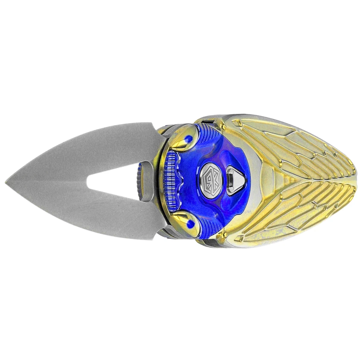 - Cicada-G Gold Titanium, Bead Blasted - a modern premium folding knife from Rike Knife, with an M390 steel blade and milled titanium handle. Biomechanical form, collectible character and technical precision in one design.