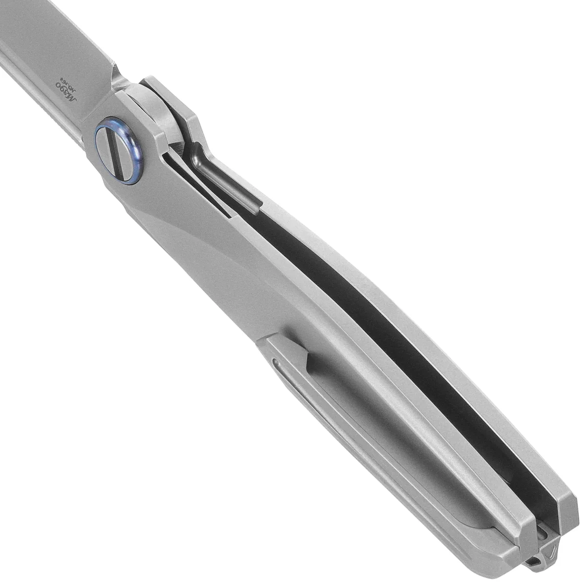 Handle - milled skeleton of titanium 6AL4V, screwless design released by a snap mechanism. On the presentation side, inlay made of Green Carbon Fiber composite - a material appreciated for its low weight and high mechanical resistance. The slim shape, pronounced profiling and careful chamfering of the edges ensure comfortable grip regardless of working conditions. The Handle is designed for optimal balance, and the deep-carry clip allows for low-profile carry. Careful workmanship and the choice of materials make the Baidi S model an offer for connoisseurs of modern folding knives with a high culture of use.