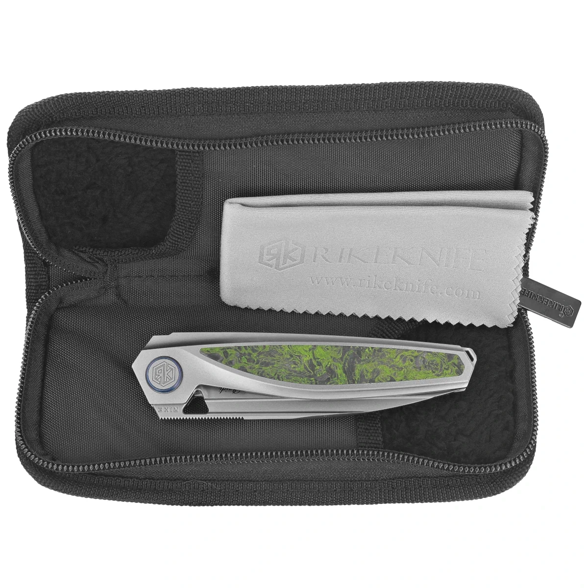 Rike Knife Baidi S Titanium/Green Carbon Fiber, Bead Blasted M390 (RK-Baidi-S-P/GCF)