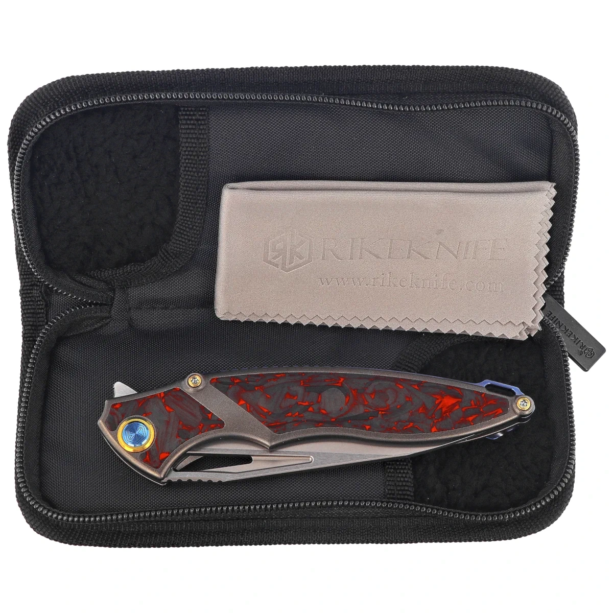 Rike Knife RK 1902 R/CF Titanium/Red Carbon Fiber, Bead Blasted M390