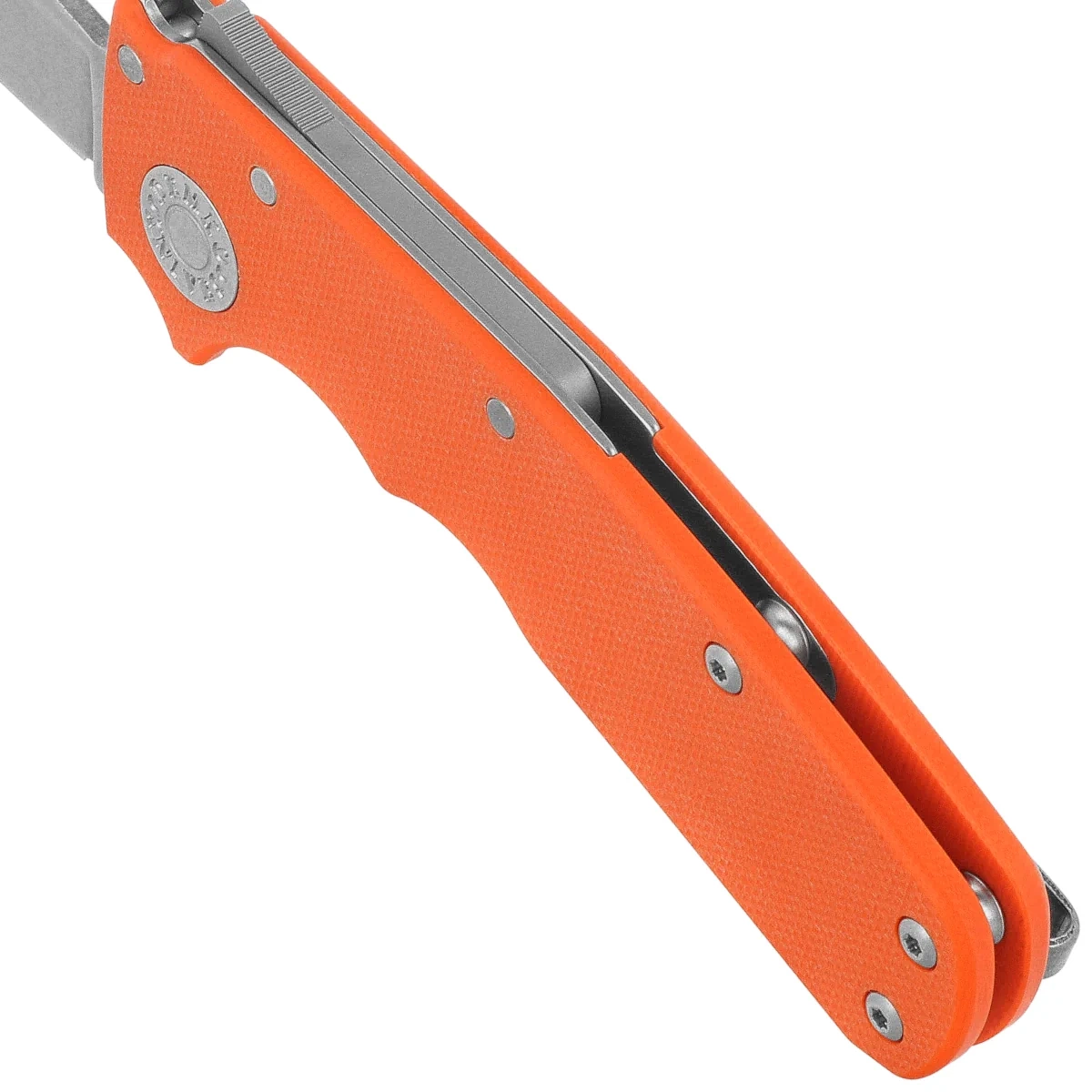 Handle grips - G10 grips offer durability and low weight, while their textured surface and beveled edges improve grip and comfort. Ergonomic finger cutouts support blade control during precision tasks. The model is equipped with a deep-carry clip, allowing discreet tip-up carry on the left or right side. Internal steel liners reinforce the overall design, and the open back design with spacer sleeves makes it easy to keep clean. This is a practical yet sophisticated tool for the most demanding EDC knife users.